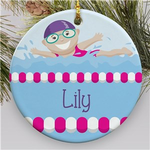 .Personalized Girl Swimmer Christmas Ornament