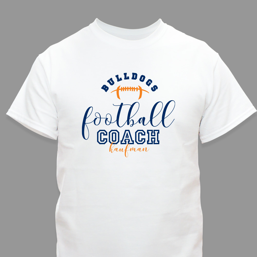 Get any coach a special gift with our Personalized Sports Coach T-Shirt!This shirt will be custom made for the coach in your life with your choice of design colors, choice of sport, team name and coach name.