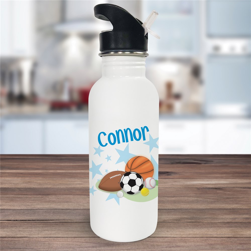 Sports Travel Water Bottle - Personalized Sports Fan Water Bottle Our Personalized Water Bottle is a fun and stylish way for your little sports fanatic to carry around fresh water all day. Children’s water bottles are perfect for school, lunch, practice and it is also makes fantastic party favors. Includes FREE Personalization! Personalize your Sports Bottle with any name.