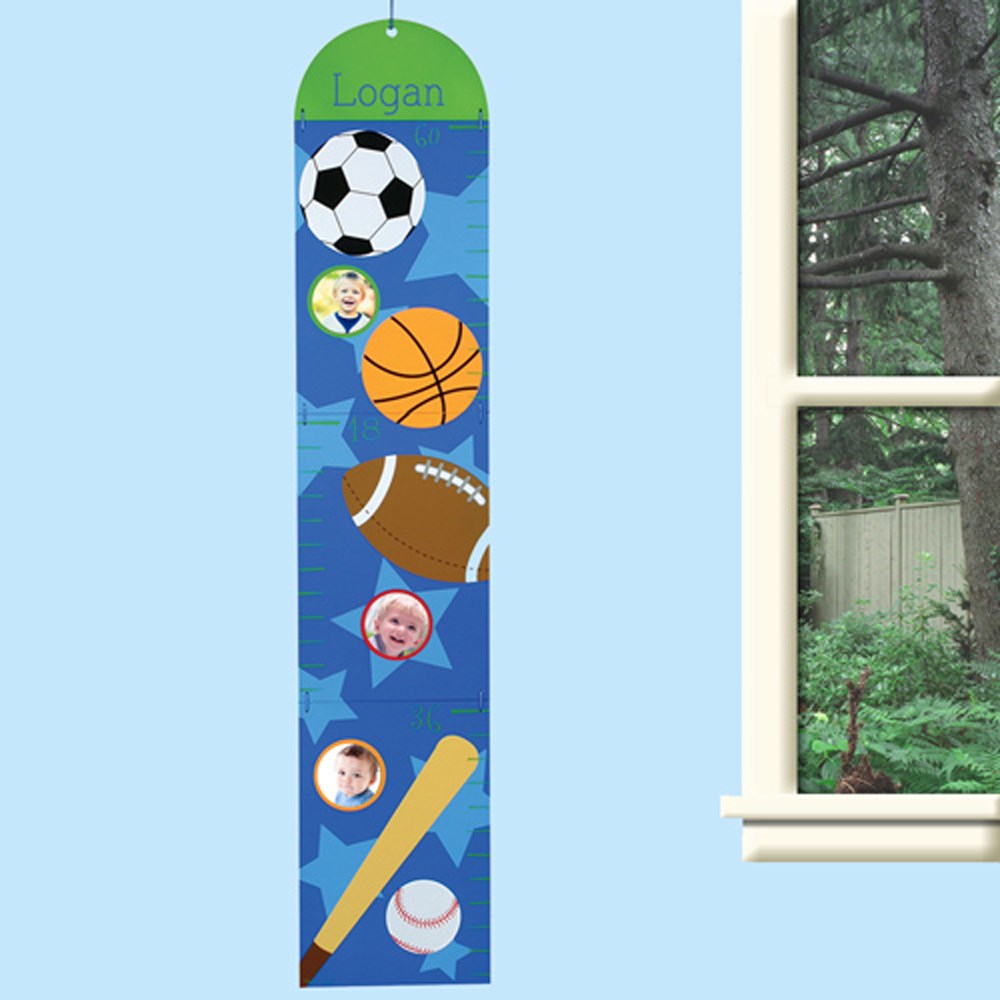 Your little sports fanatic will love to keep track of his every inch with our personalized sports growth chart.Add Any name and a favorite photo to the 3 round frames included to make fun Personalized Baby Gifts showing how far he has grown. All Customized Baby Gifts are customized FREE and ship FAST!