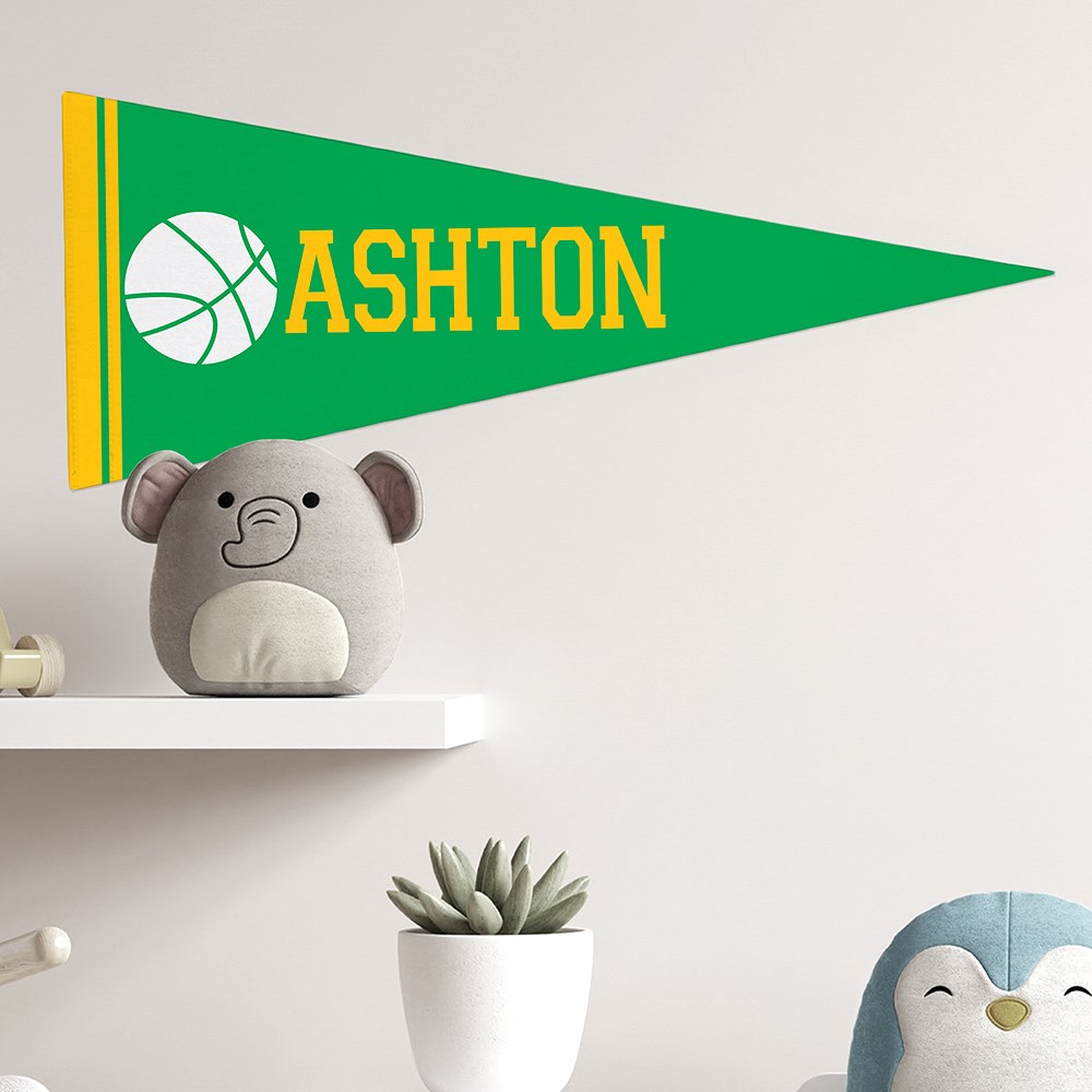 Score big with this Personalized Sports Icon Pennant, the perfect addition to your little athlete's room!