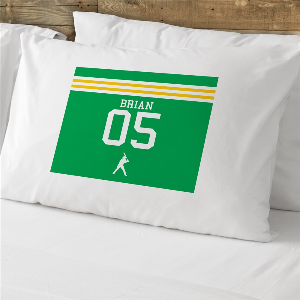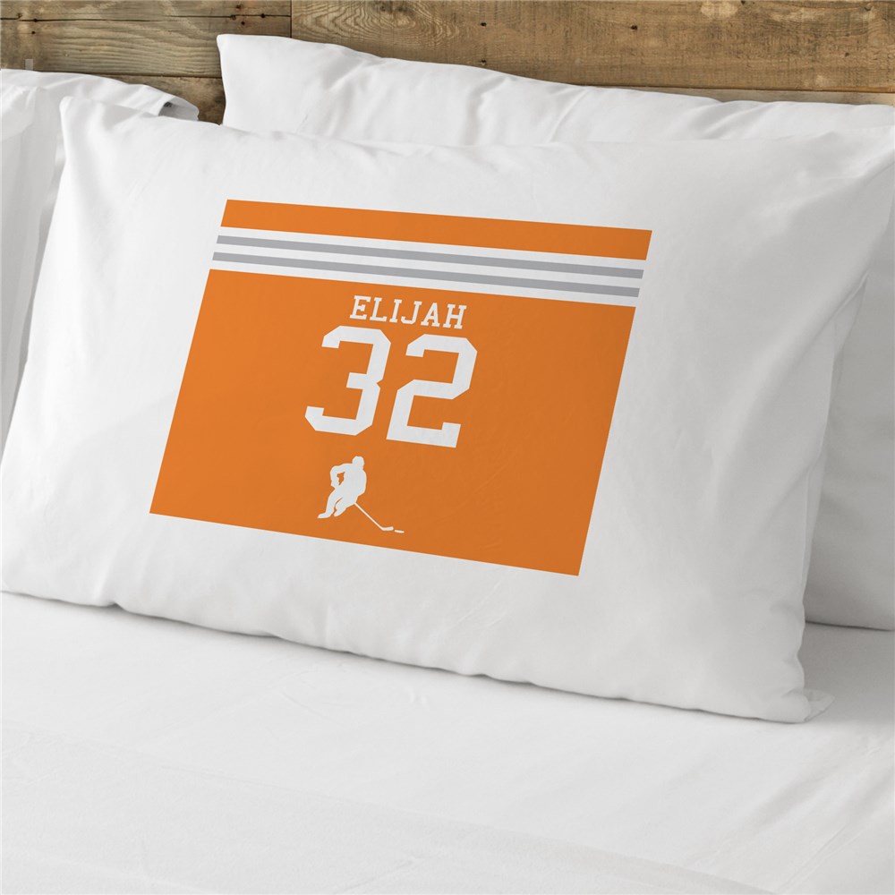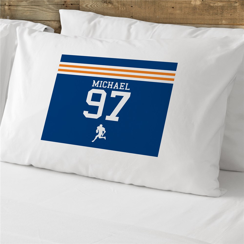 Our Pillow Case may be personalized with your choice of stripe color, choice of background color, any name, any numbers and any sports icon.