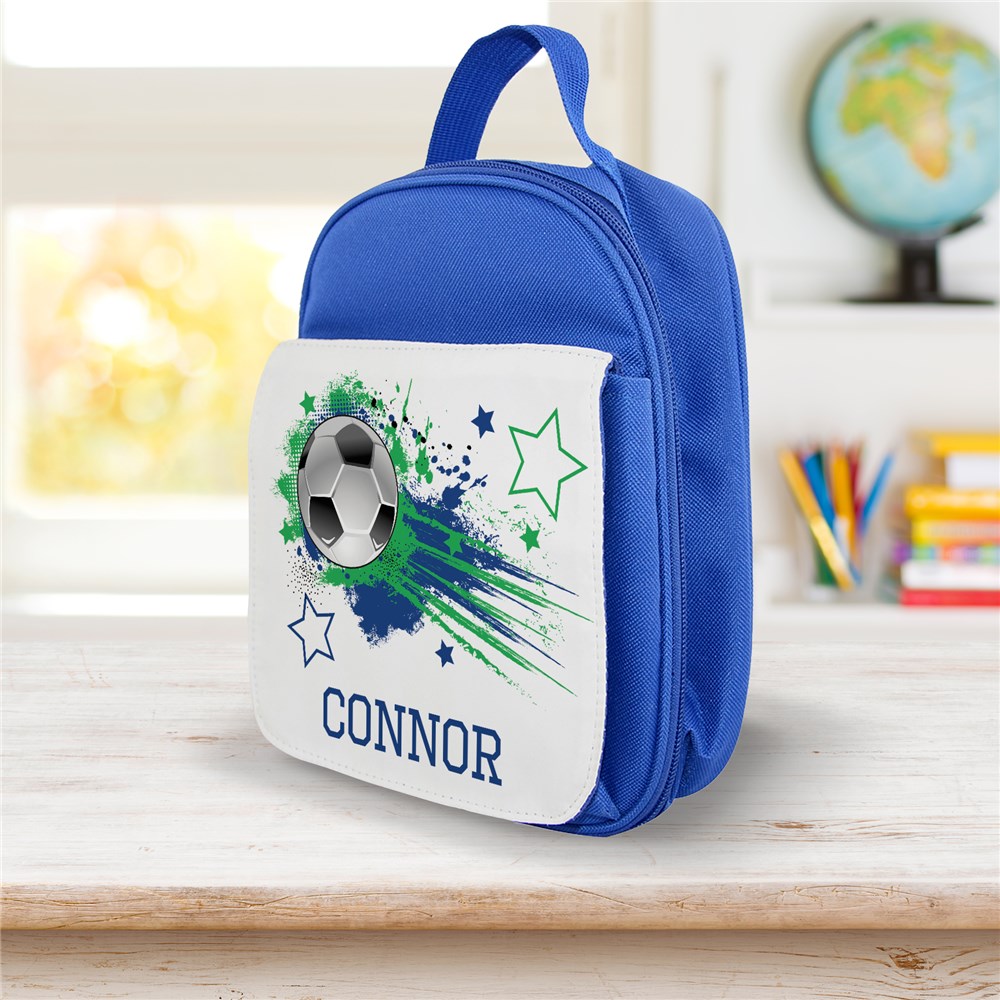 This sports lunch bag can be personalized with your choice of design colorchoice of sport and any name