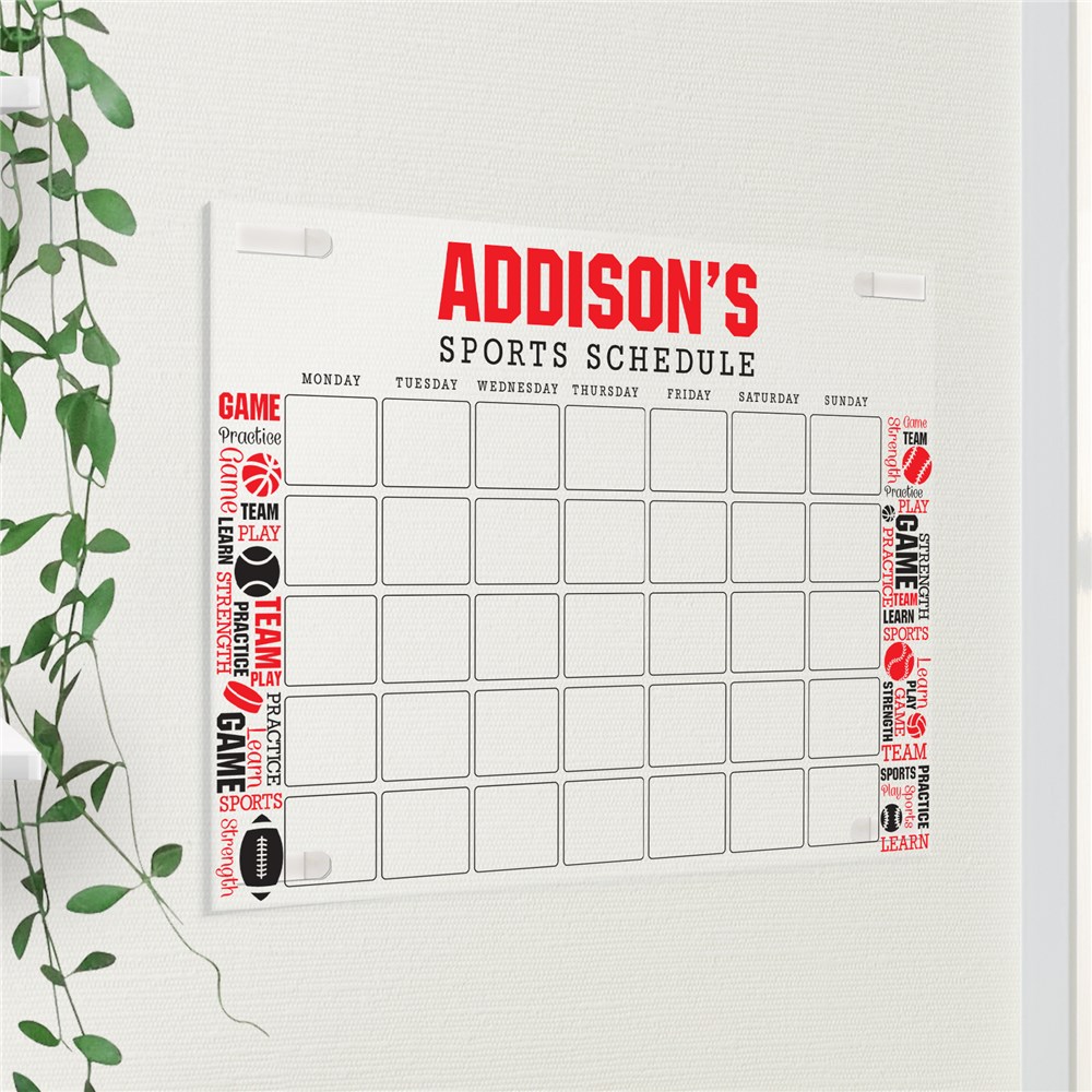 Make sure you're always on top of your child's busy life with our Personalized Sports Word Art Calendar Acrylic Sign.