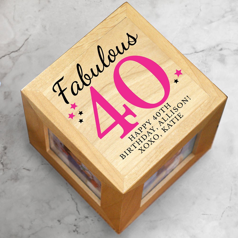 This Birthday Photo Cube will be personalized with your choice of design color, any custom message line, any age and up to 3 custom message lines at the bottom.