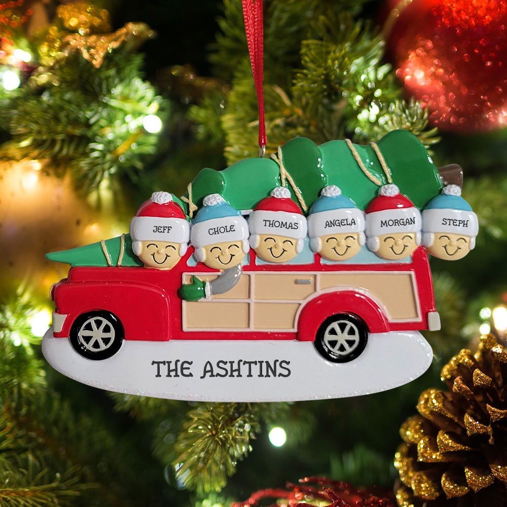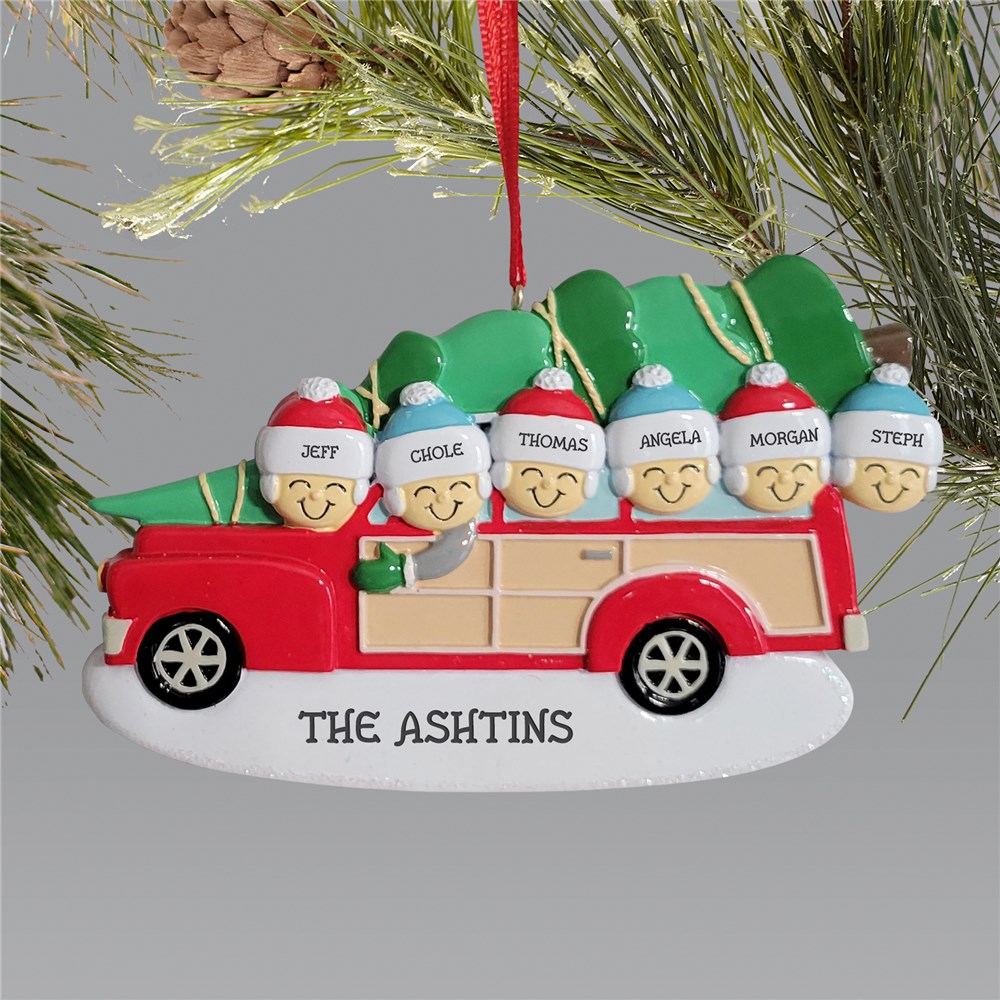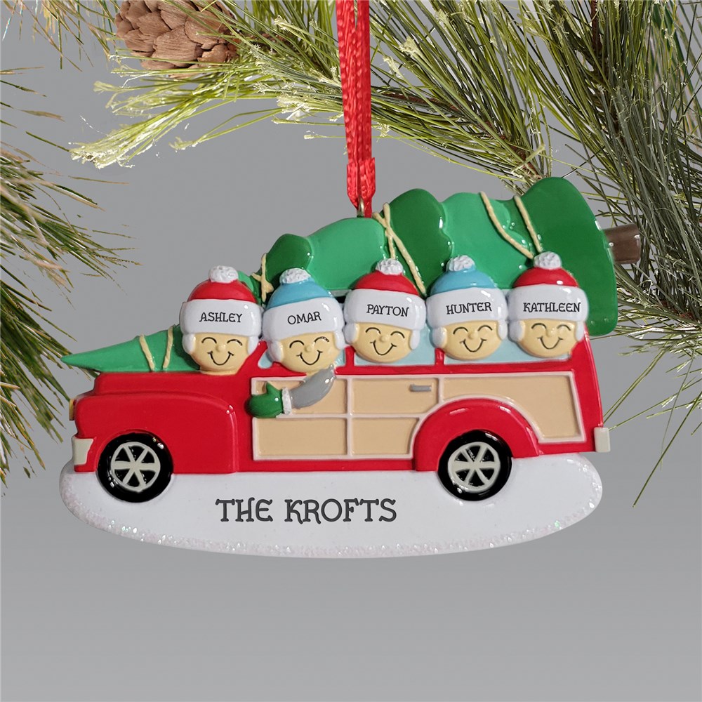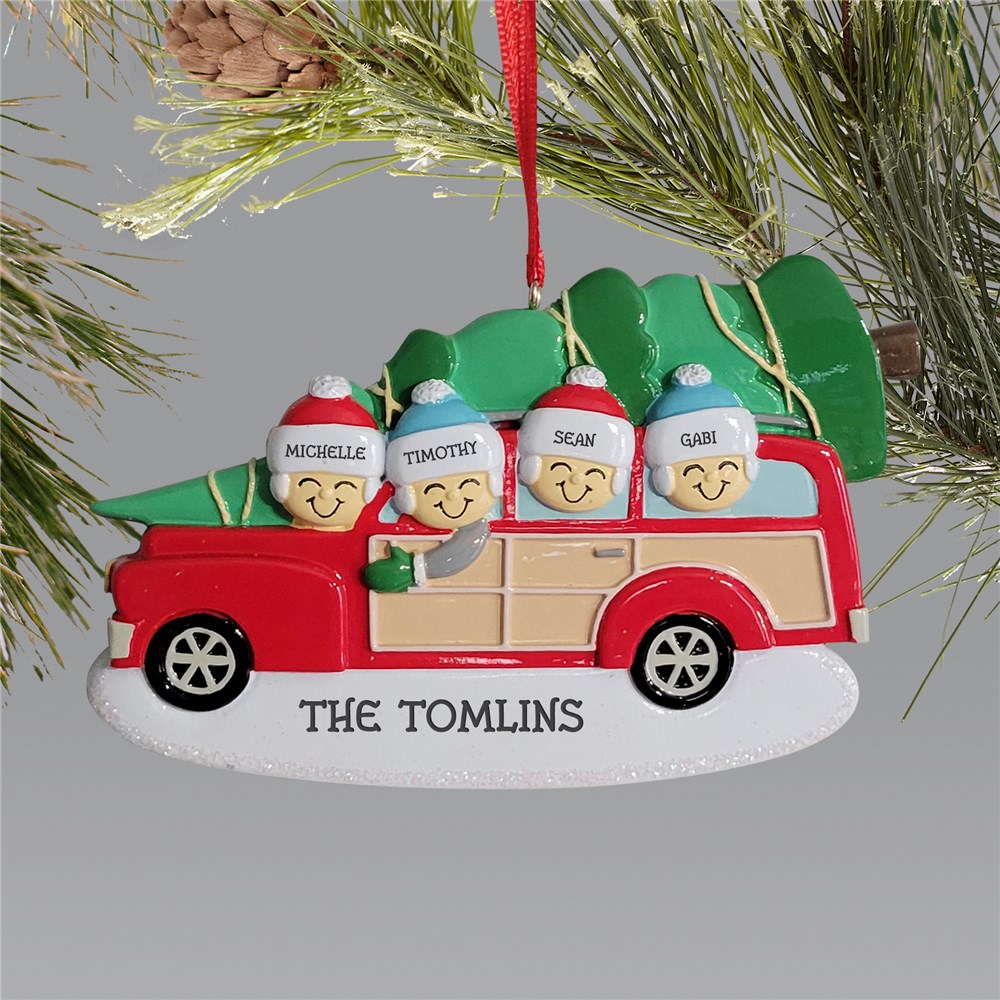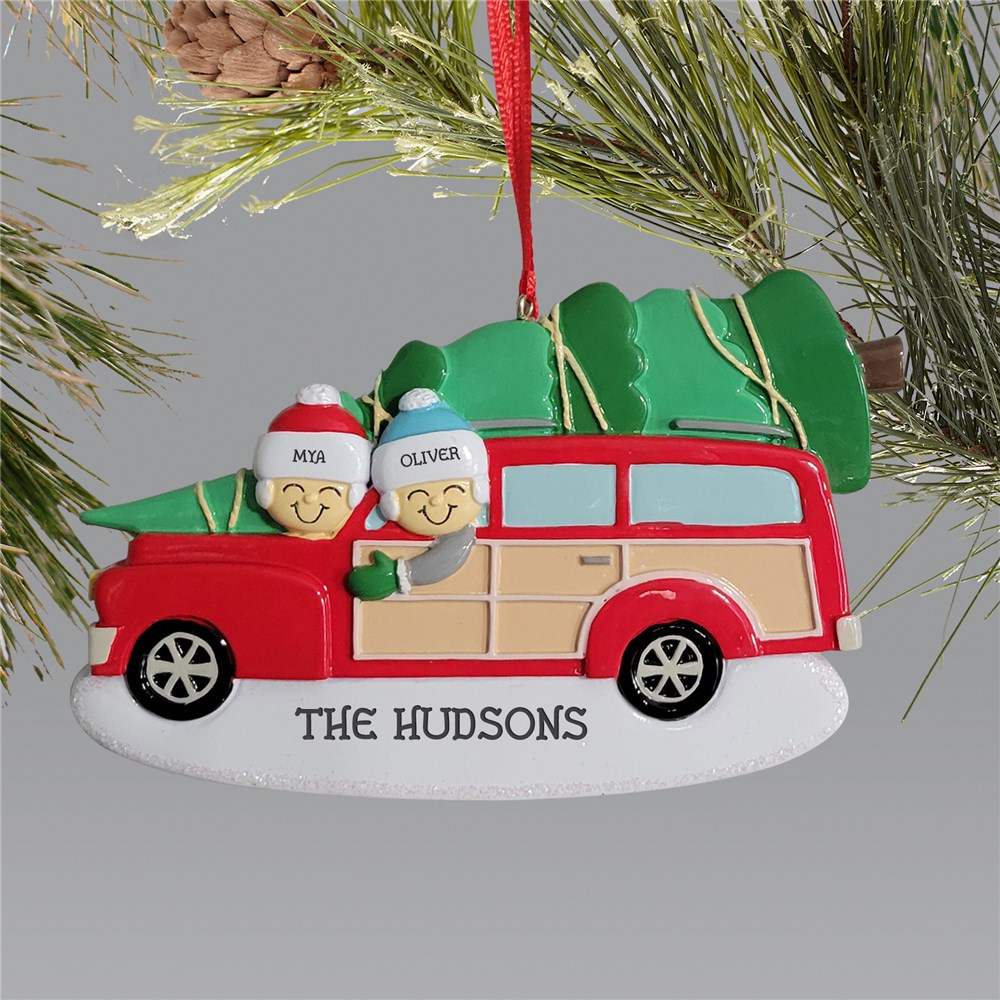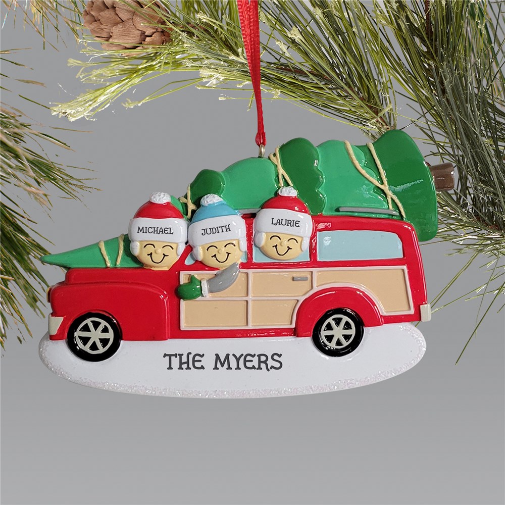 Picking out the Christmas tree every year is a fun family tradition that's displayed on our Personalized Station Wagon Family Ornament.