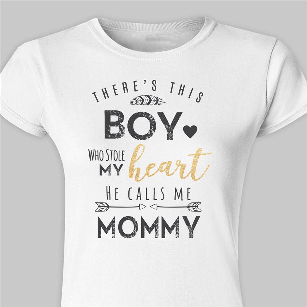Give her a t-shirt she can wear with love for that special boy with a Personalized Stolen Heart Fitted T-Shirt.
