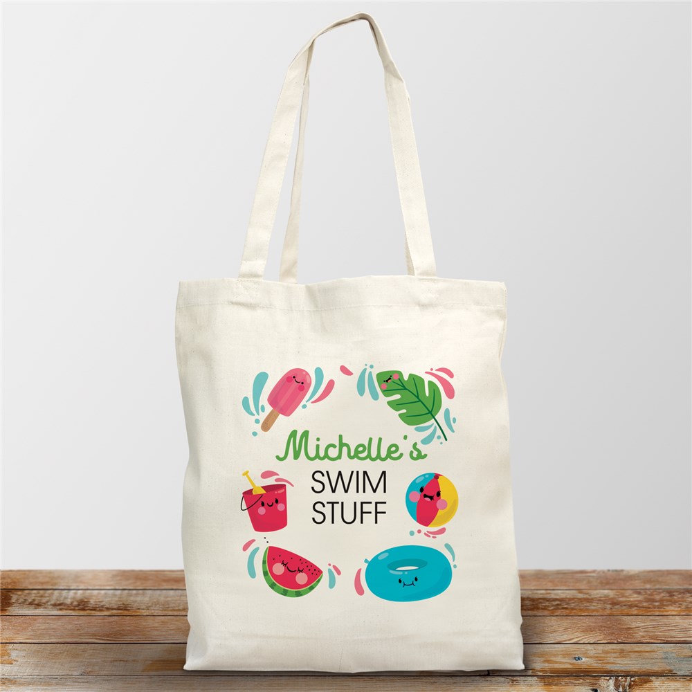 Bring everything you need to have a fun day at the pool with our Personalized Summer Fun Icon Tote Bag!