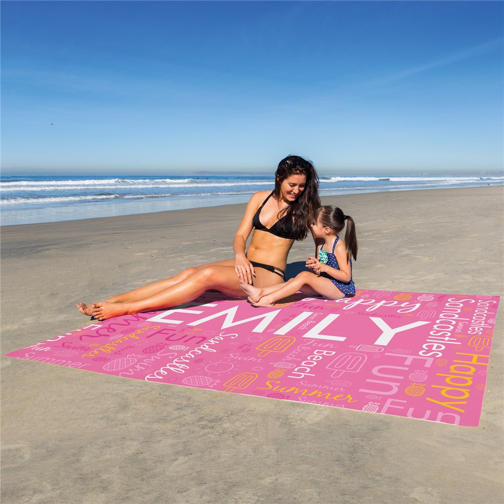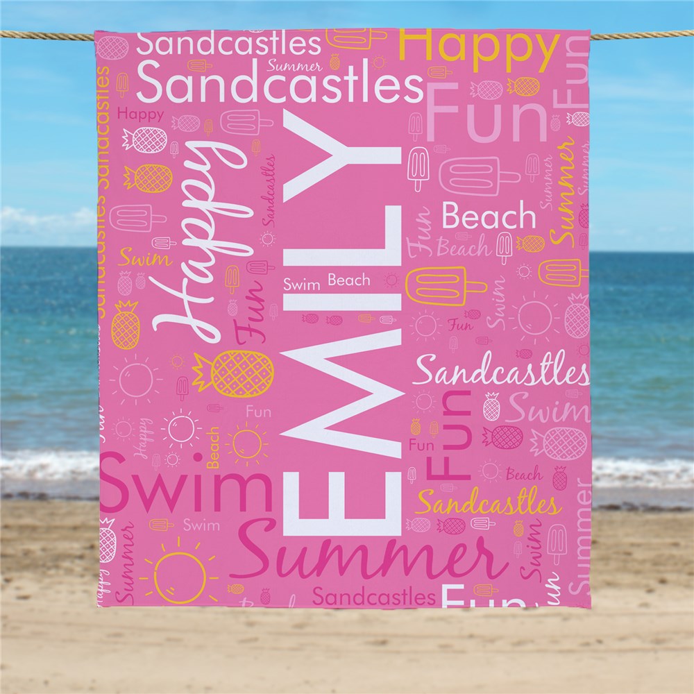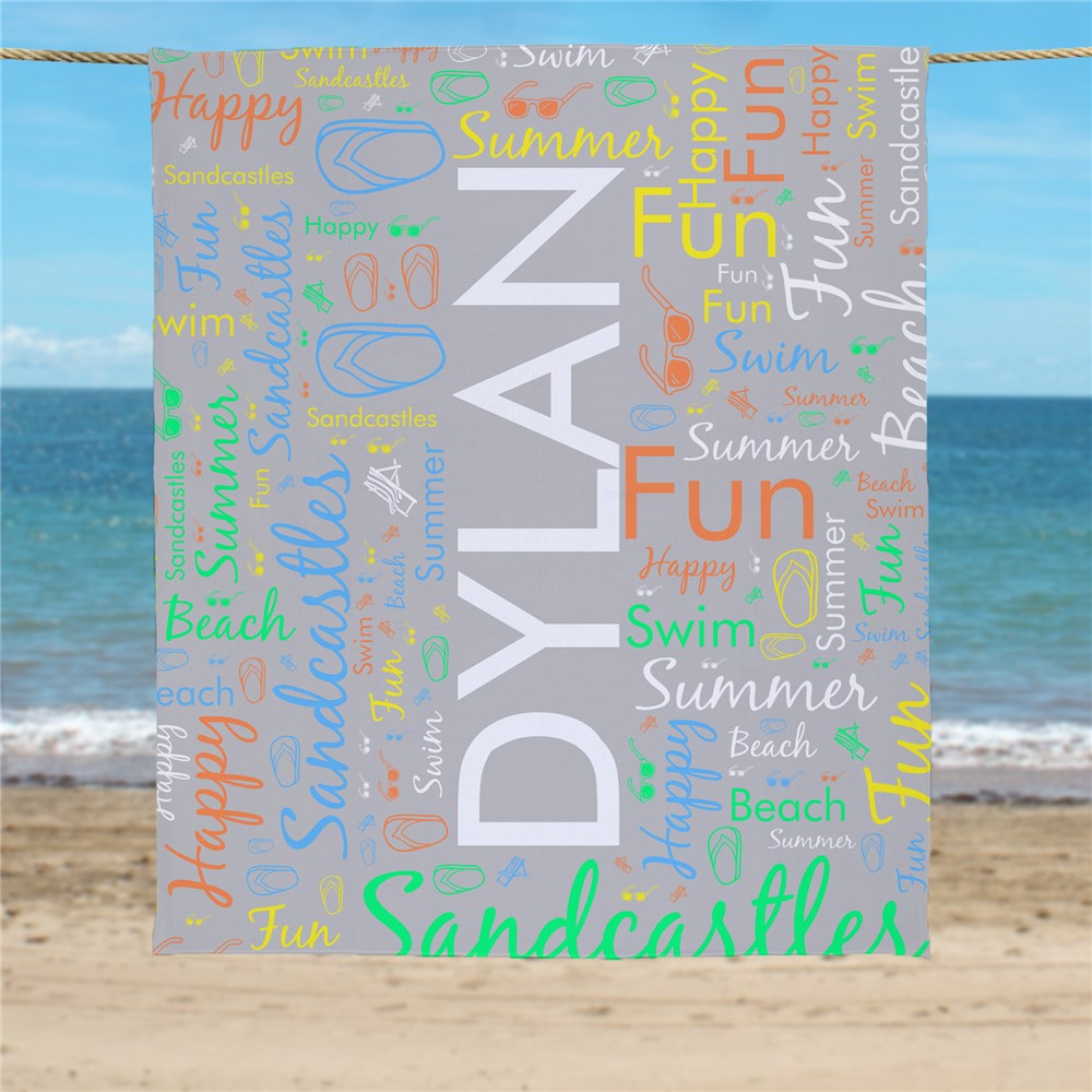 If you plan on spending a lot of time at the pool or beach this summer, then our Personalized Summer Fun Word Art 60x72 Beach Towel will definitely come in handy!Using our word-art tools, add your favorite words and some cool summer colors to create a unique towel made just the way you like it.