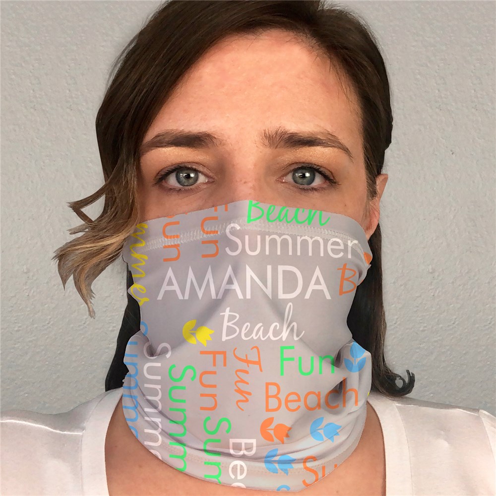 Stay safe with our bright and colorful Personalized Summer Fun Word Art Gaiter.