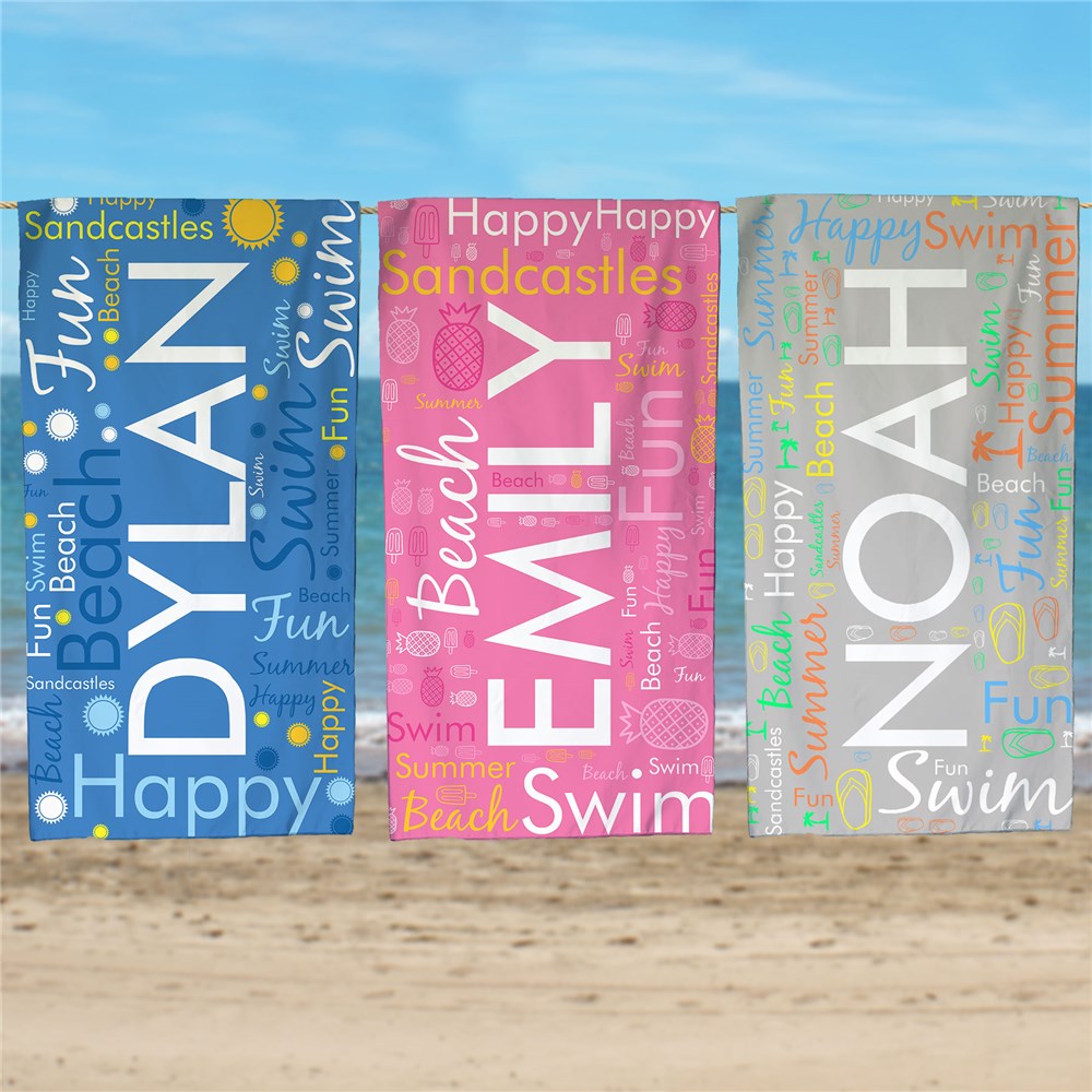 Our Personalized Word Art Quick-Dry Beach Towel was made for beach trips!Using our word-art tools, add your favorite words and some cool summer colors to create a unique towel made just the way you like it.