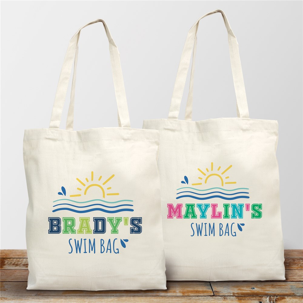 Kids will love carrying their Personalized Sunny Swim Tote Bag to the pool or beach this summer!