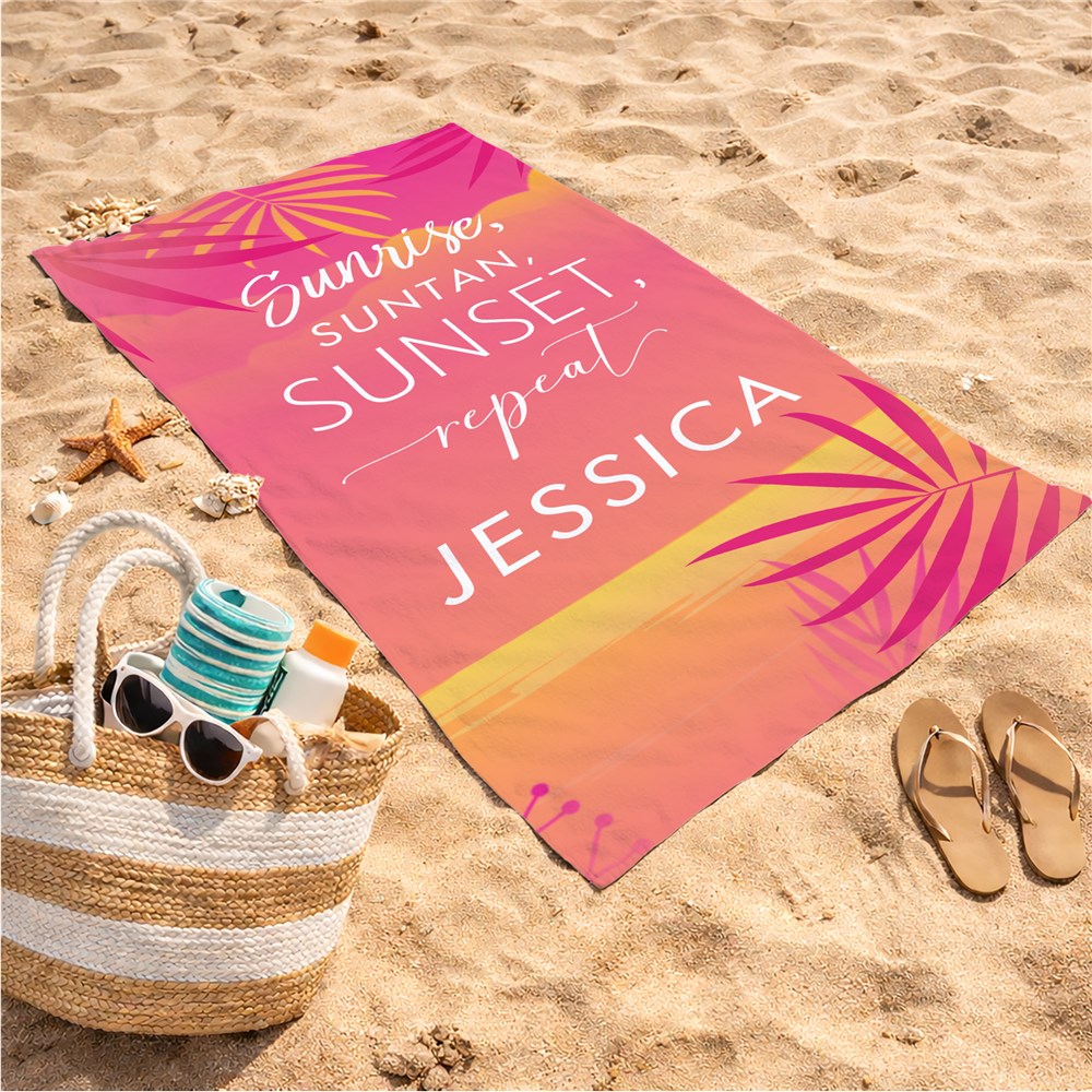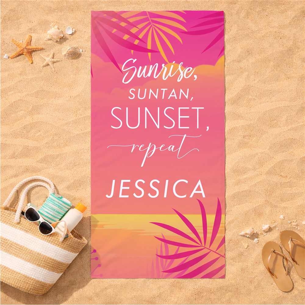 Personalized Sunrise, Suntan, Sunset, Repeat Beach TowelPersonalized Sunrise, Suntan, Sunset, Repeat Beach TowelPersonalized Sunrise, Suntan, Sunset, Repeat Beach Towel
