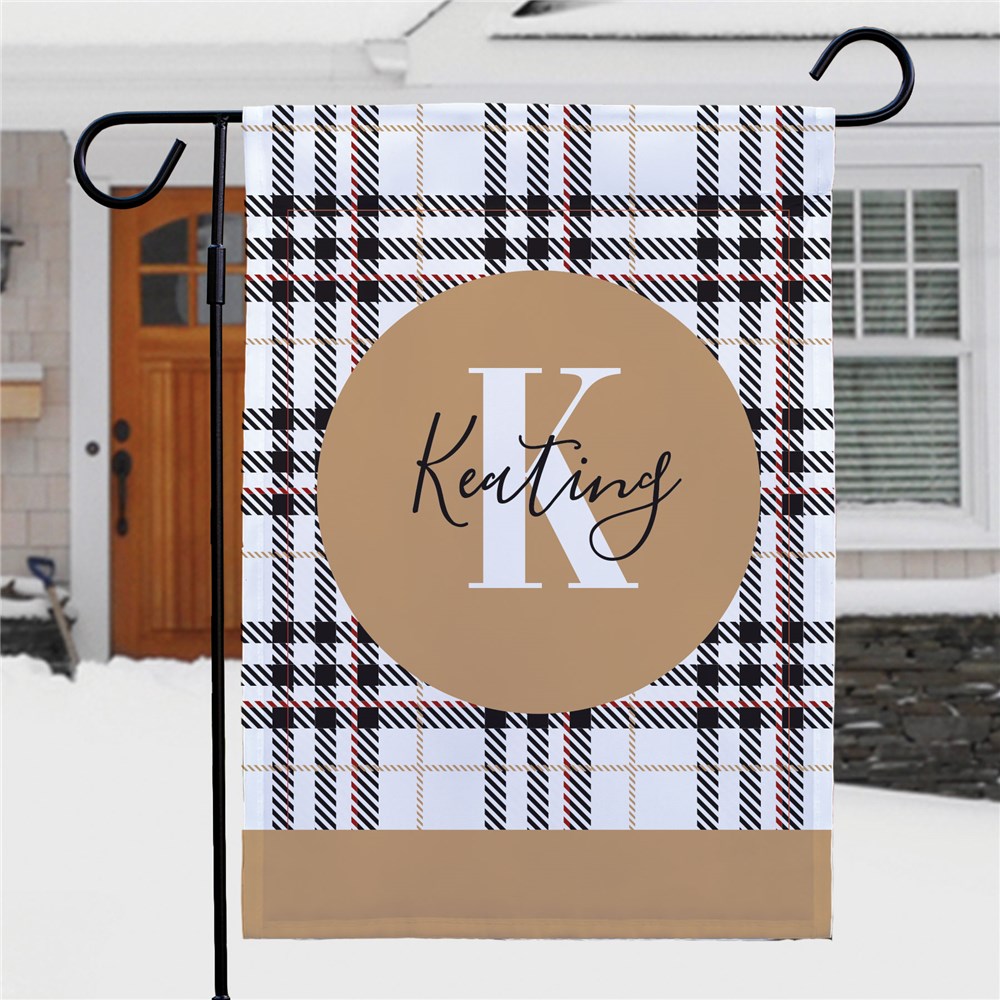 Our Personalized Tan & Plaid Garden Flag is perfect decor for this fall or winter season.