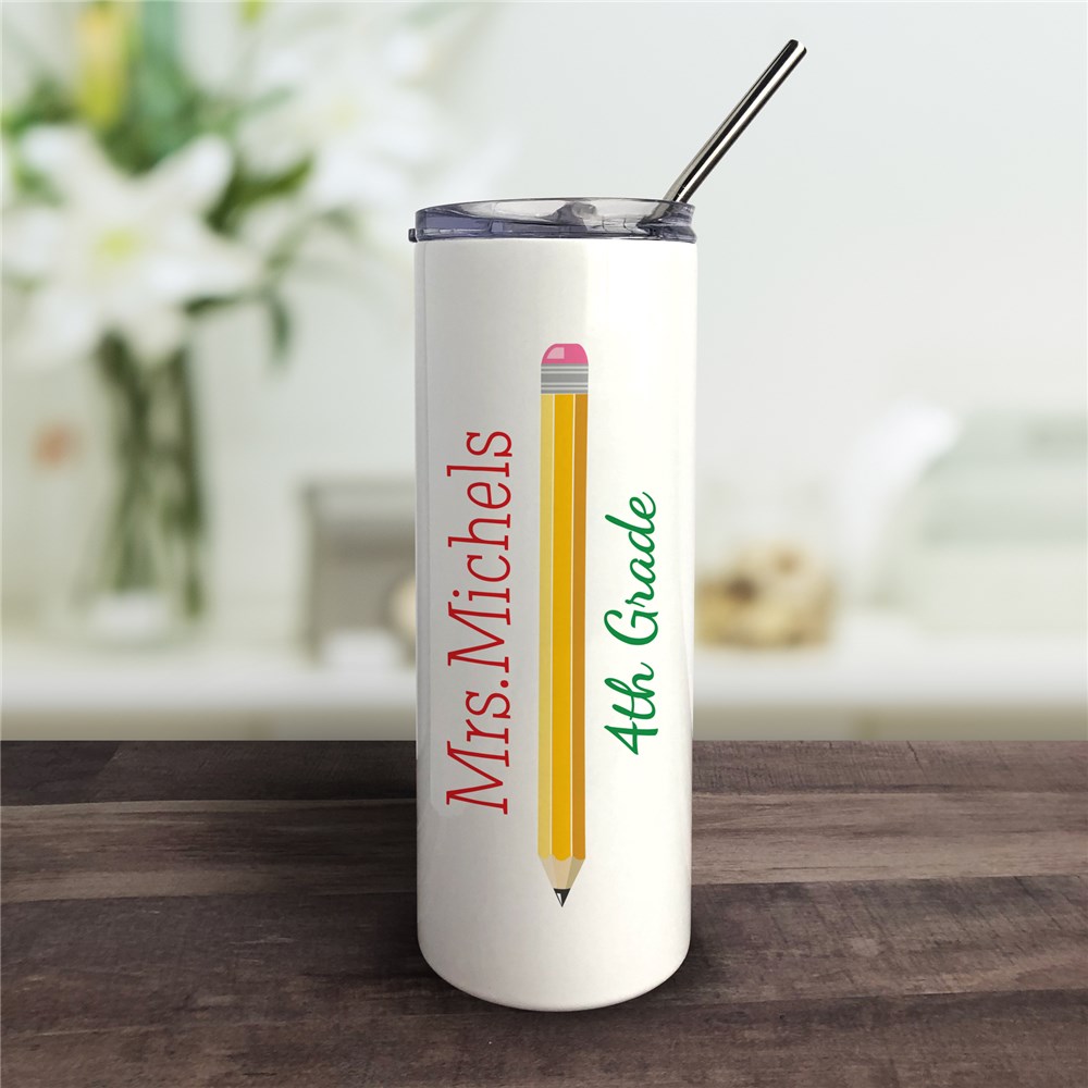 Personalized Teacher Tumbler with Straw and Pencil Design