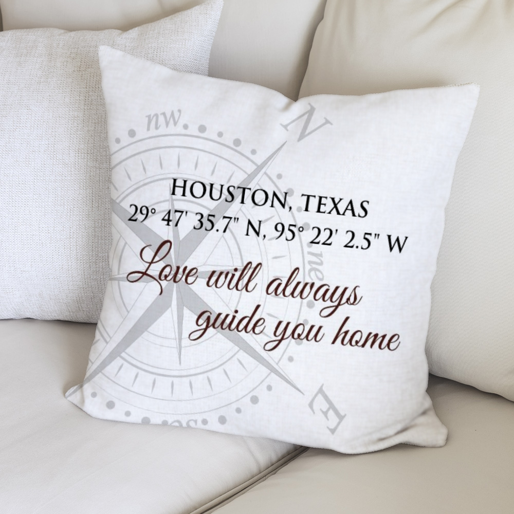 .Personalized Love Will Guide You Home Coordinates Throw Pillow