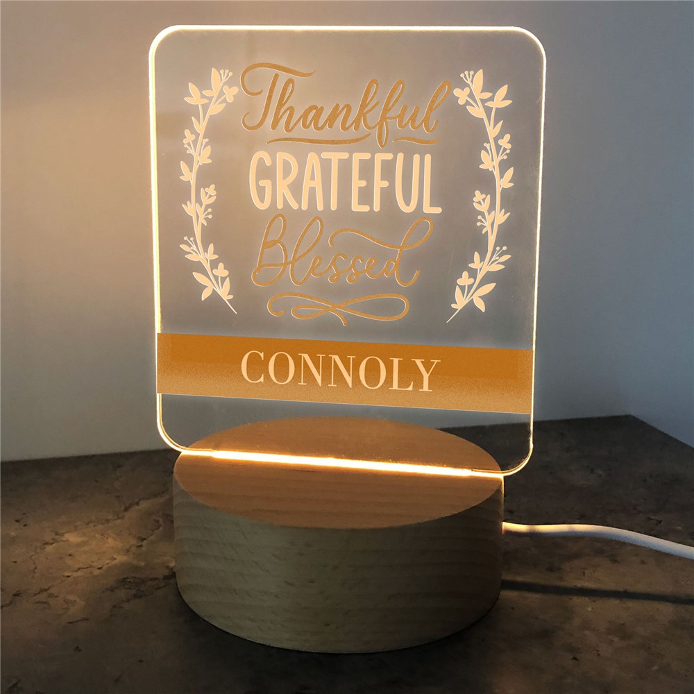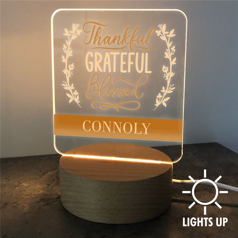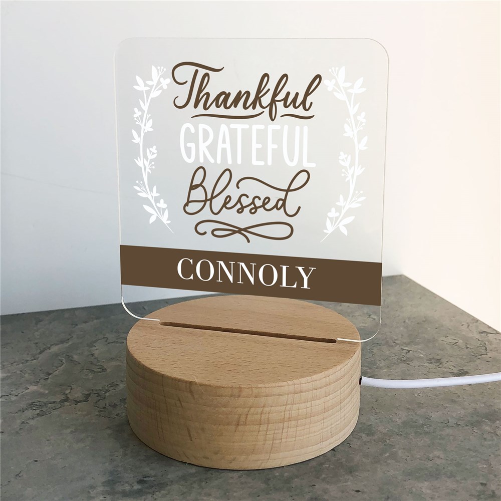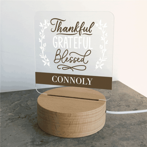 Make your living room feel cozy and warm at night this fall with our Personalized Thankful Grateful Blessed Square LED Sign.