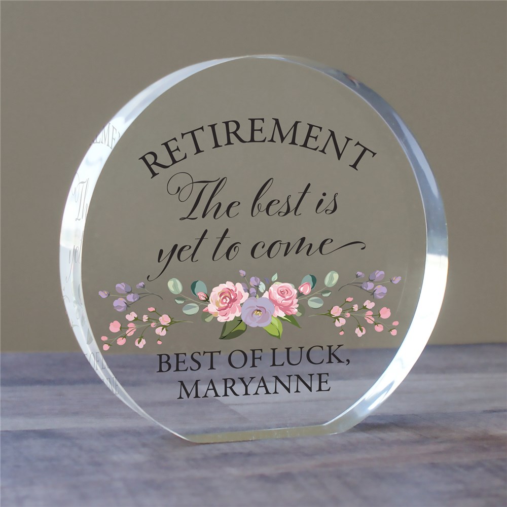 Wish your friend and coworker a happy retirement with our Personalized The Best is Yet to Come Round Acrylic Keepsake.