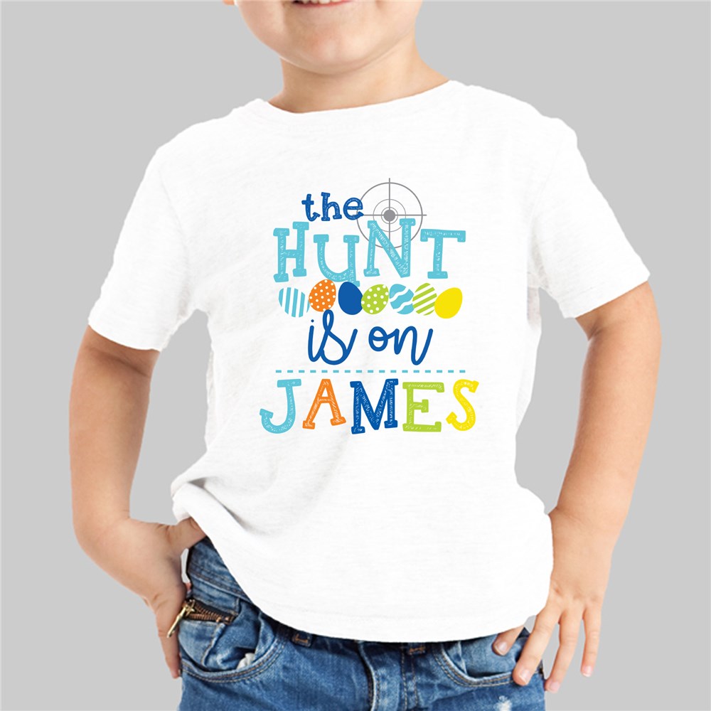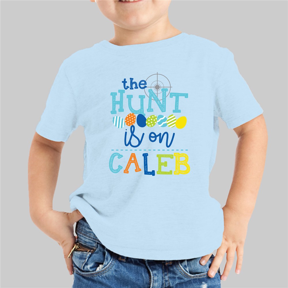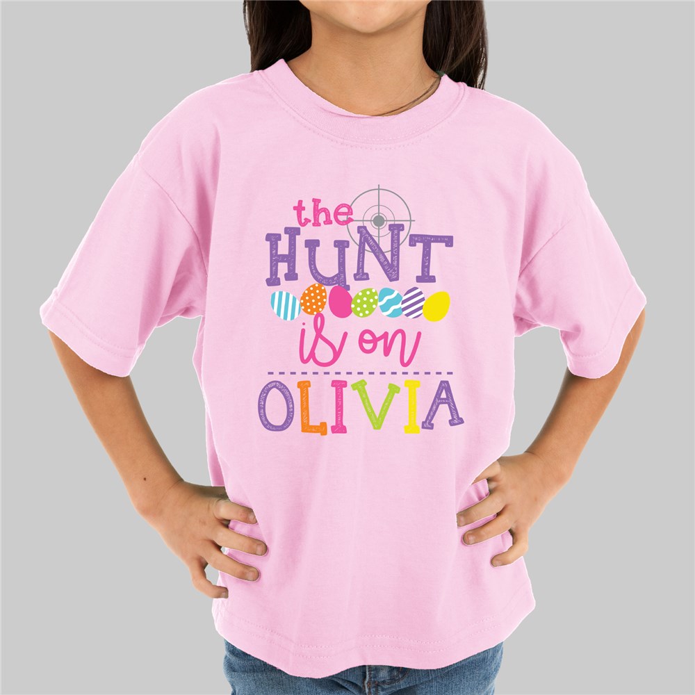 Your child will be ready to do some serious egg hunting with our Personalized The Hunt Is On Youth T-Shirt!