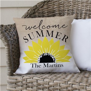 .Personalized Sunflower Welcome Summer Throw Pillow