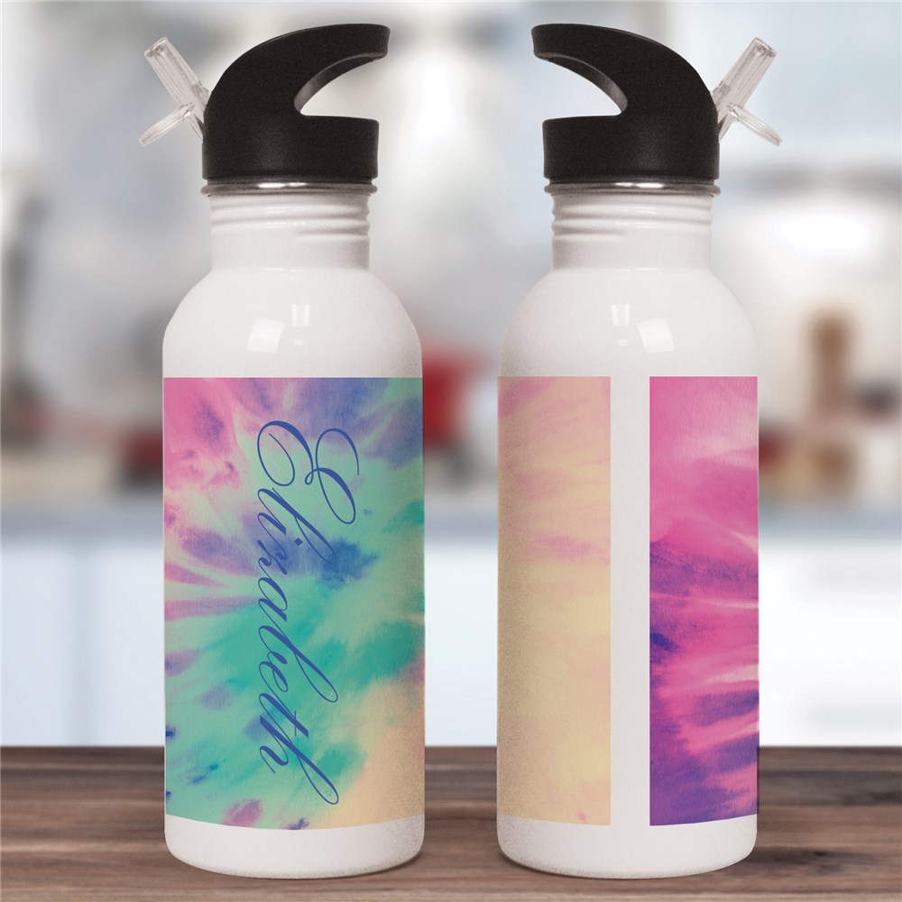 Always keep water with you on the go using our Personalized Tie Dye Pastel Water Bottle.