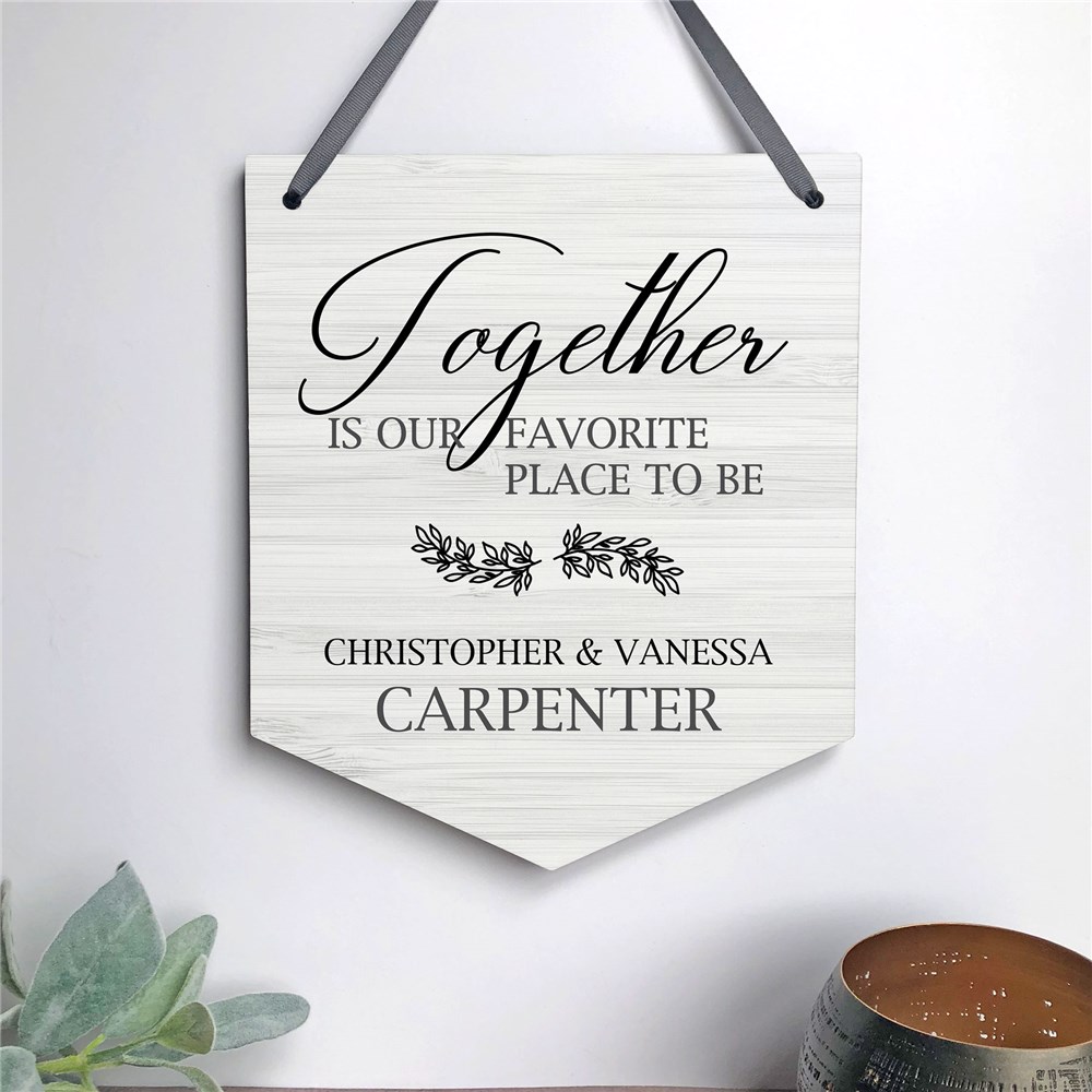Our Personalized Together Banner Shaped Sign is perfect for couples to hang in their home.