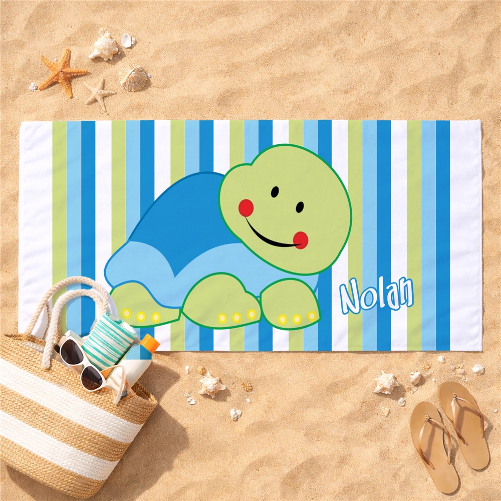 Nothing says "summertime" like a trip to the beach, and the outing is made much more enjoyable when you have a personalized beach towel to use! Your little one will love this adorable turtle beach towel personalized specifically for them.