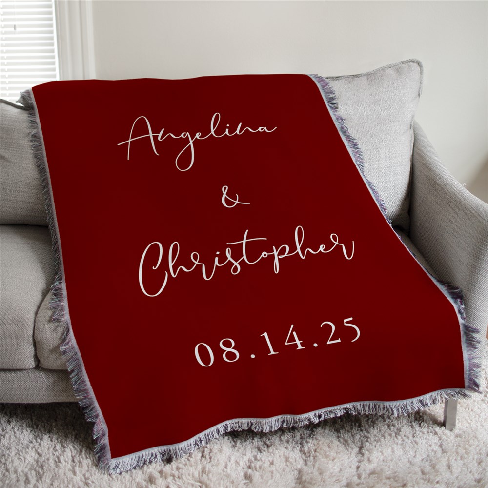 Celebrate your love story with our Personalized Two Names And Date Afghan Throw, a beautiful and meaningful addition to any home.