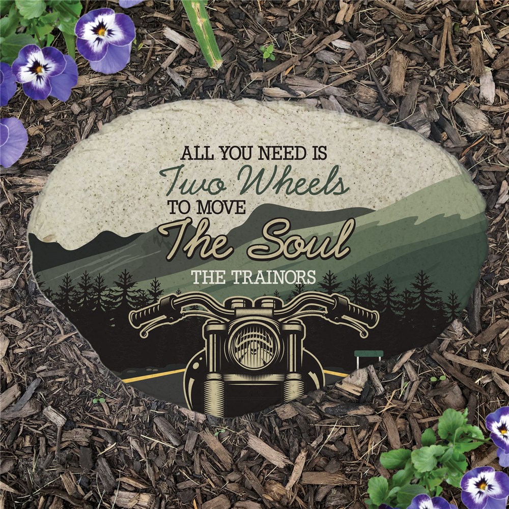 Great gift for the motorcycle lover in you life with our Personalized Two Wheels To Move The Soul Flat Garden Stone.