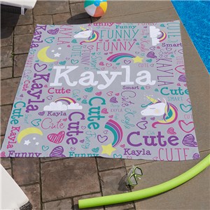 Personalized Unicorn Word Art Sand-Free Beach Towel