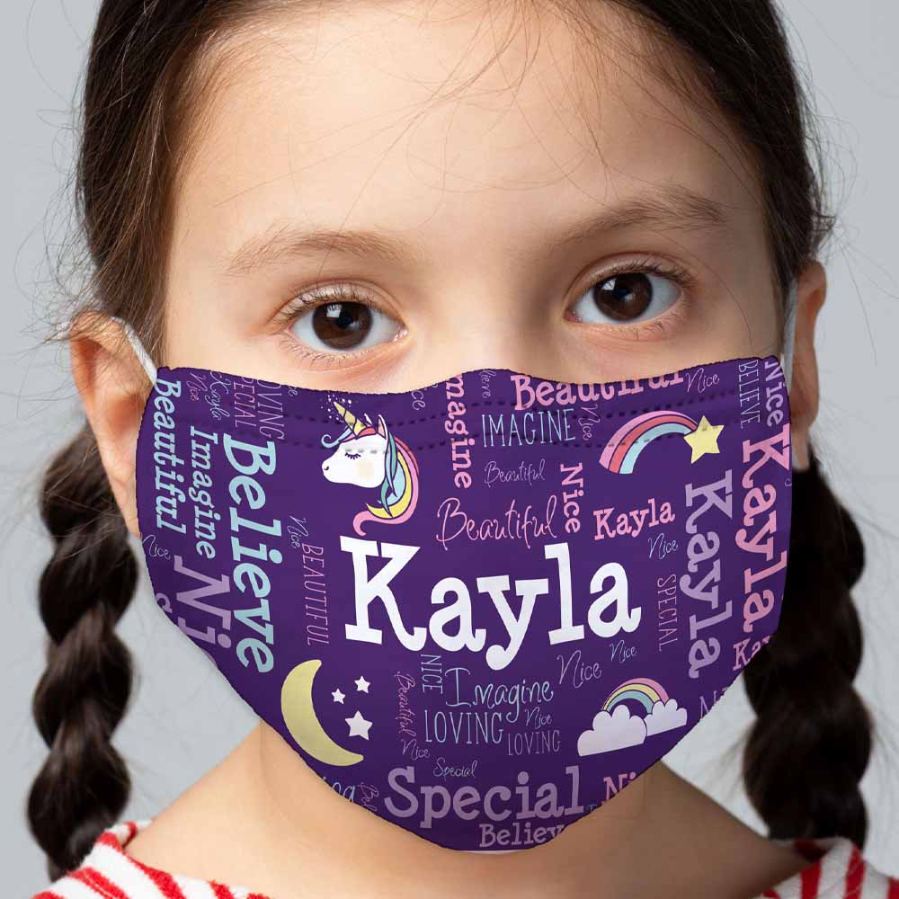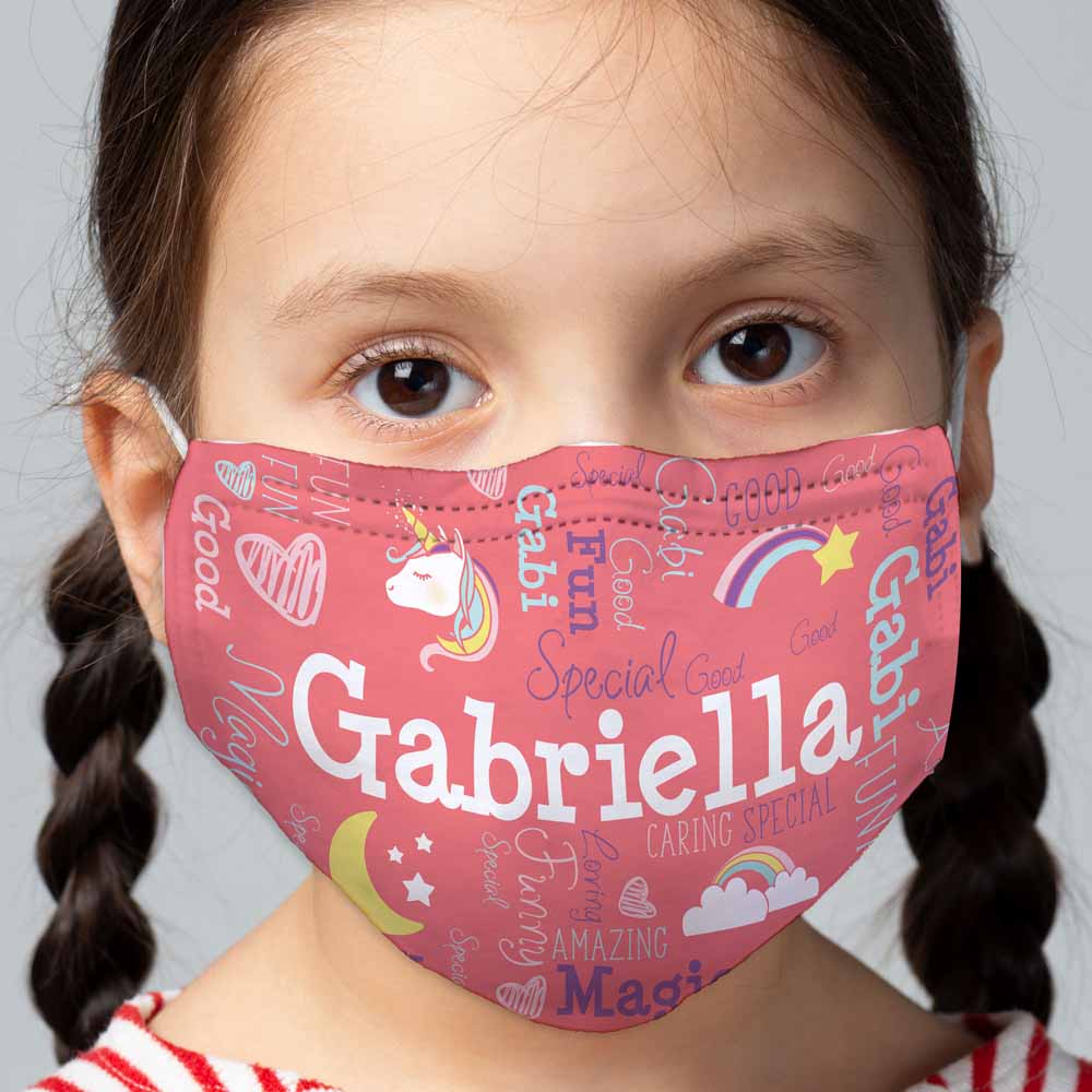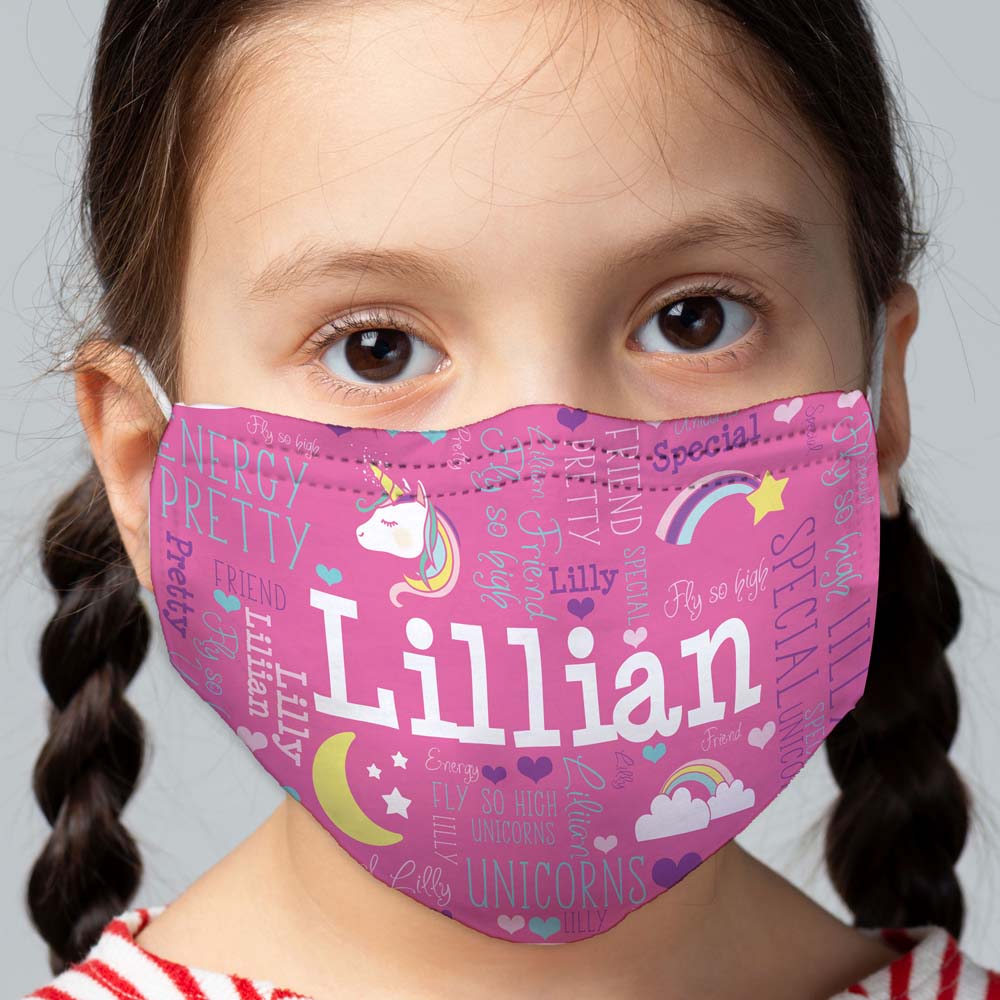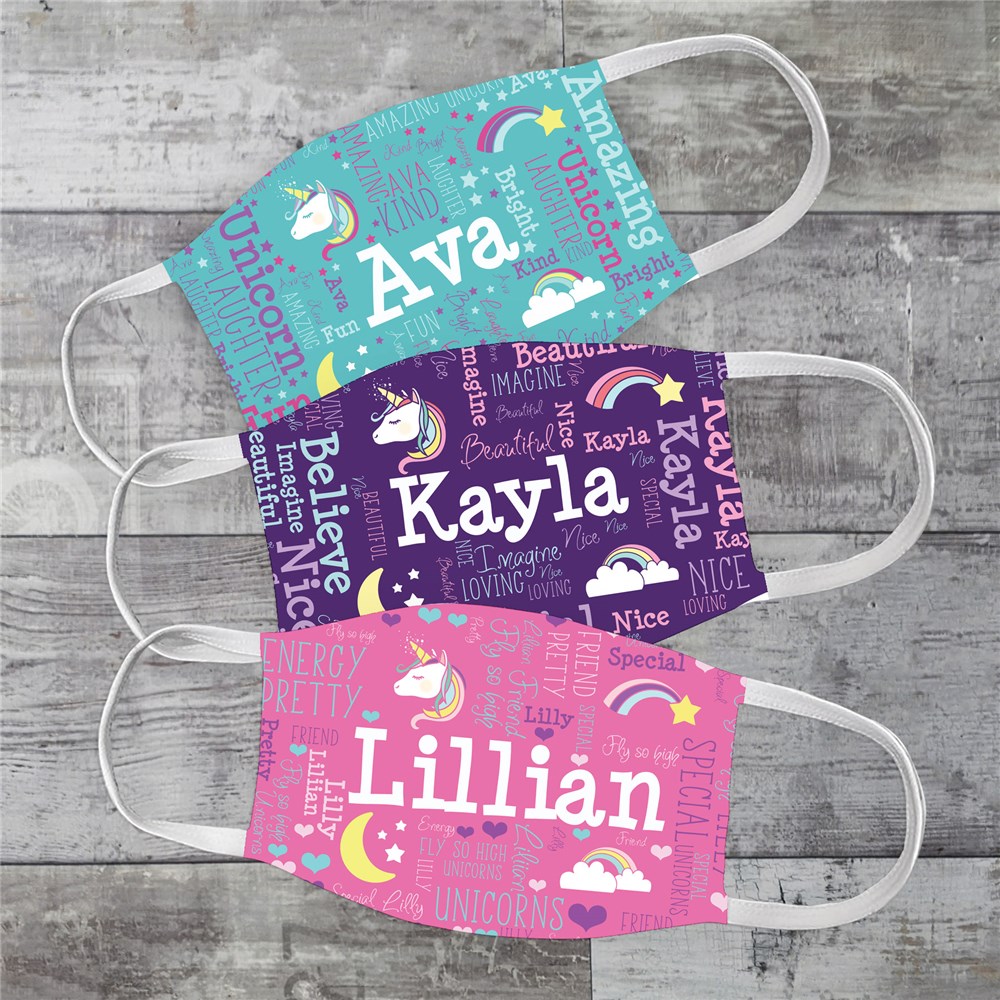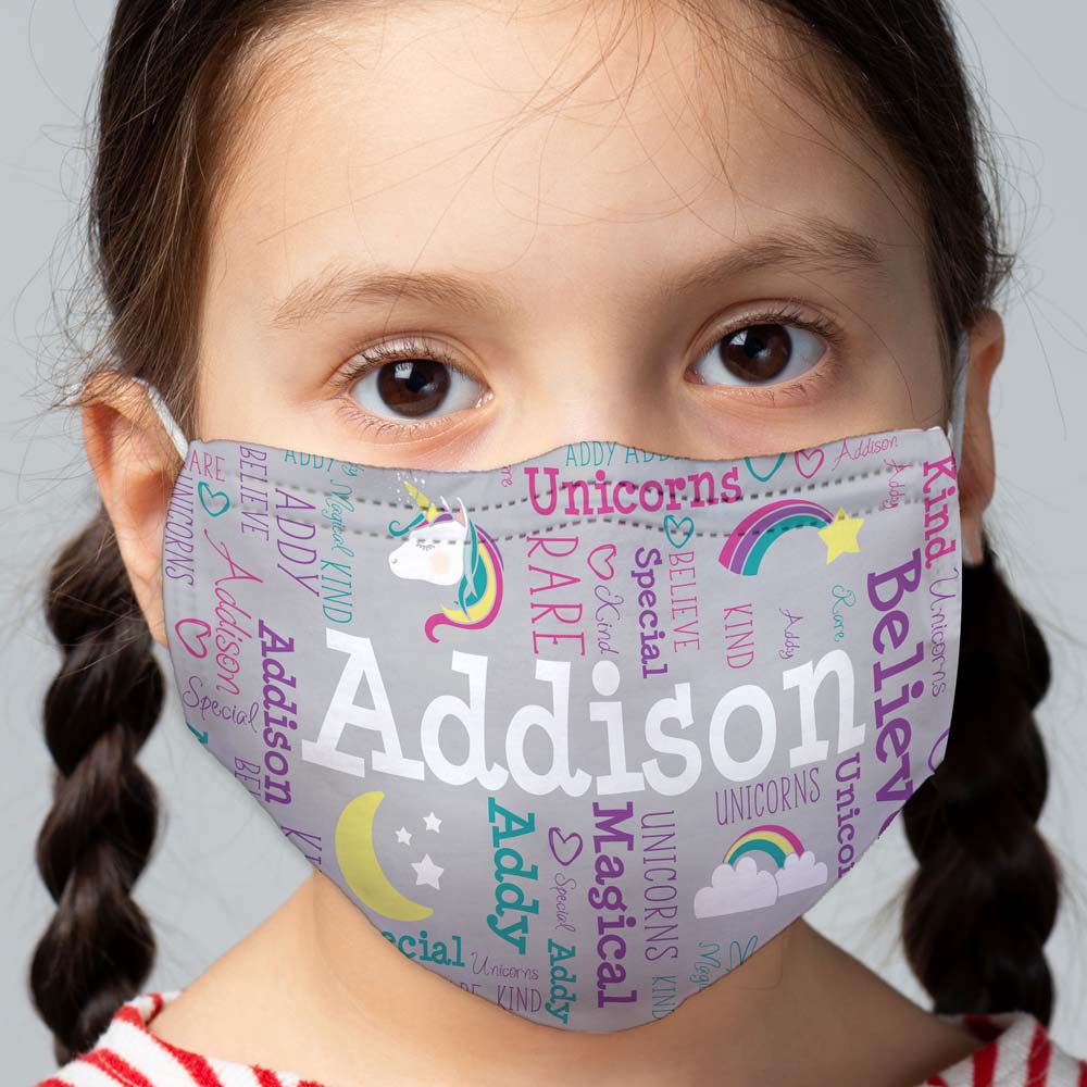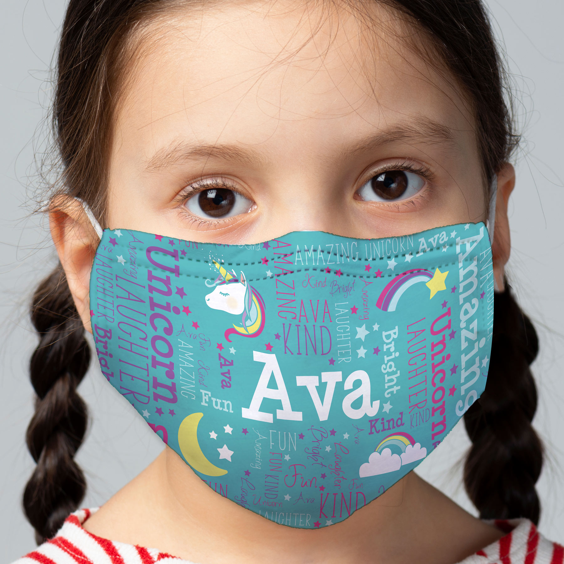Kids will adore this cute Personalized Unicorn Word Art Youth Face Mask!
