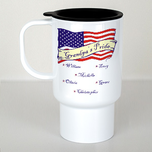 Your Personalized USA Patriotic T-Shirt is available on a premium white 100% cotton t-shirt, machine washable in adult sizes S-3XL. Each USA flag shirt is also available in Pink or Ash Gray. All of our American Pride Gifts include FREE Personalization. Personalized American Flag Shirts can be customized with any title and up to 30 children or grandchildren’s names. Why not create Personalized American Pride T-Shirts for the entire family each personalized with titles such as Grandpa, Mom, Papa, Dad or any special title.