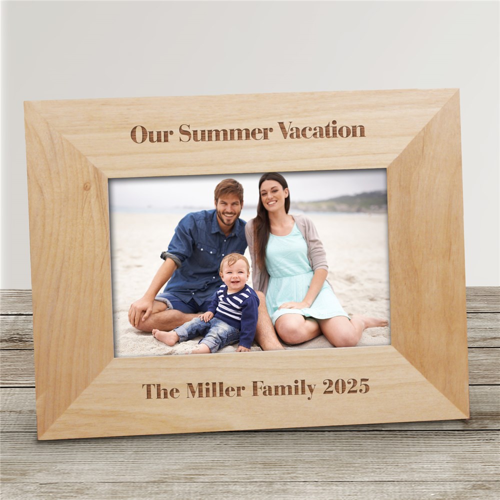 Vacationing with the family is a treasured time. Remember your special trip to a famous landmark or weekend get away to your favorite vacation spot with your own Personalized Picture Frames. A Personalized Vacation Frame is a beautiful way to celebrate time shared together. Engrave your Wooden Vacation Picture Frame with any two line custom message and picture frame orientation of horizontal or vertical. Customized Picture Frames are the perfect gift for any occasion, Buy Today!