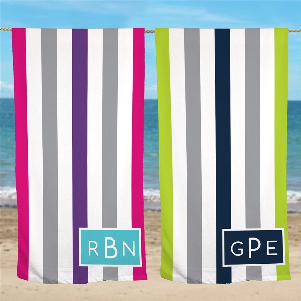 Whether you are at the beach, pool, water park or lake this Personalized Vertical Stripes Monogram Beach Towel is perfect.