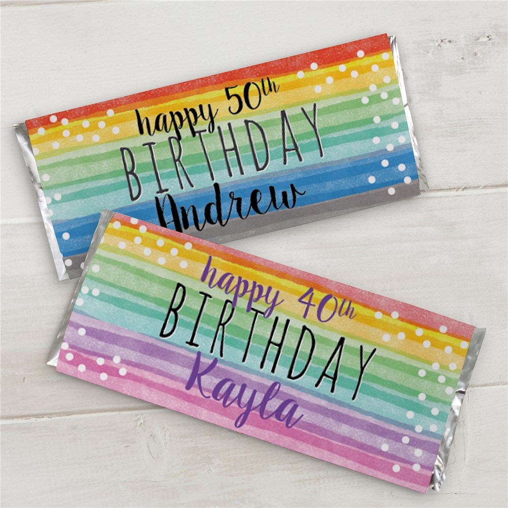 Complete any birthday party with our Personalized Watercolor Confetti Candy Bar Wrappers.