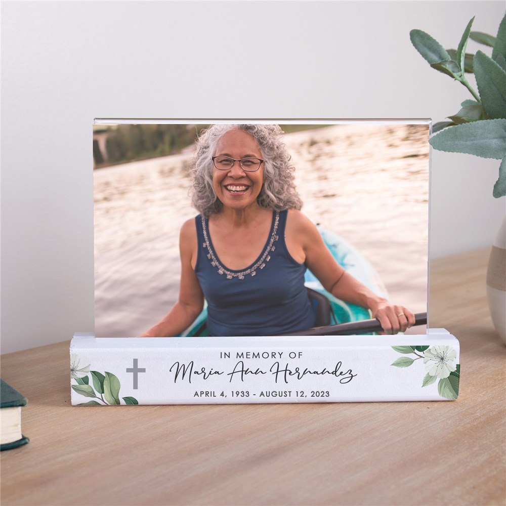 Put your favorite photo of your deceased loved one on display with our Personalized Watercolor In Memory Of Photo Holder.