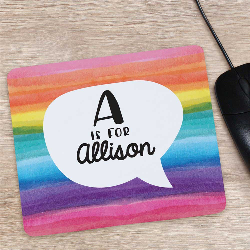 This colorful mouse pad can be personalized with any initial and name.