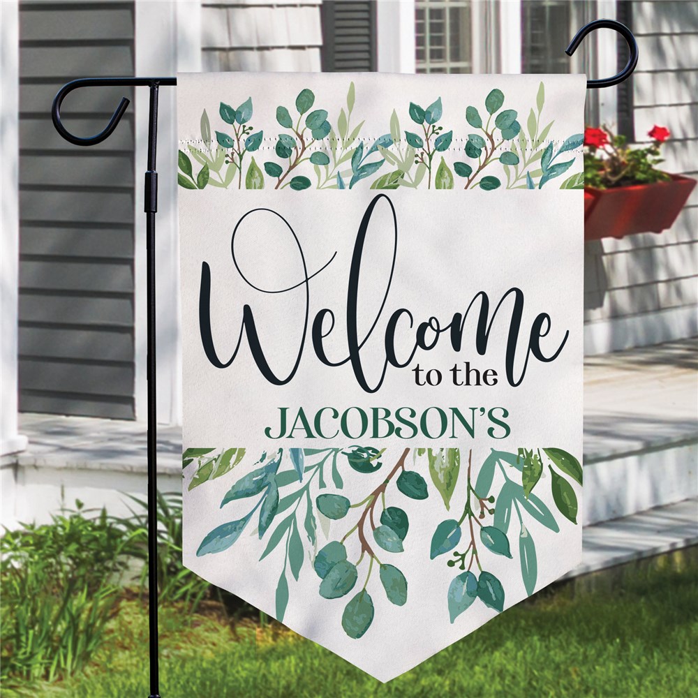 Add a fresh look to your front yard with our Personalized Welcome Botanical Pennant Garden Flag.
