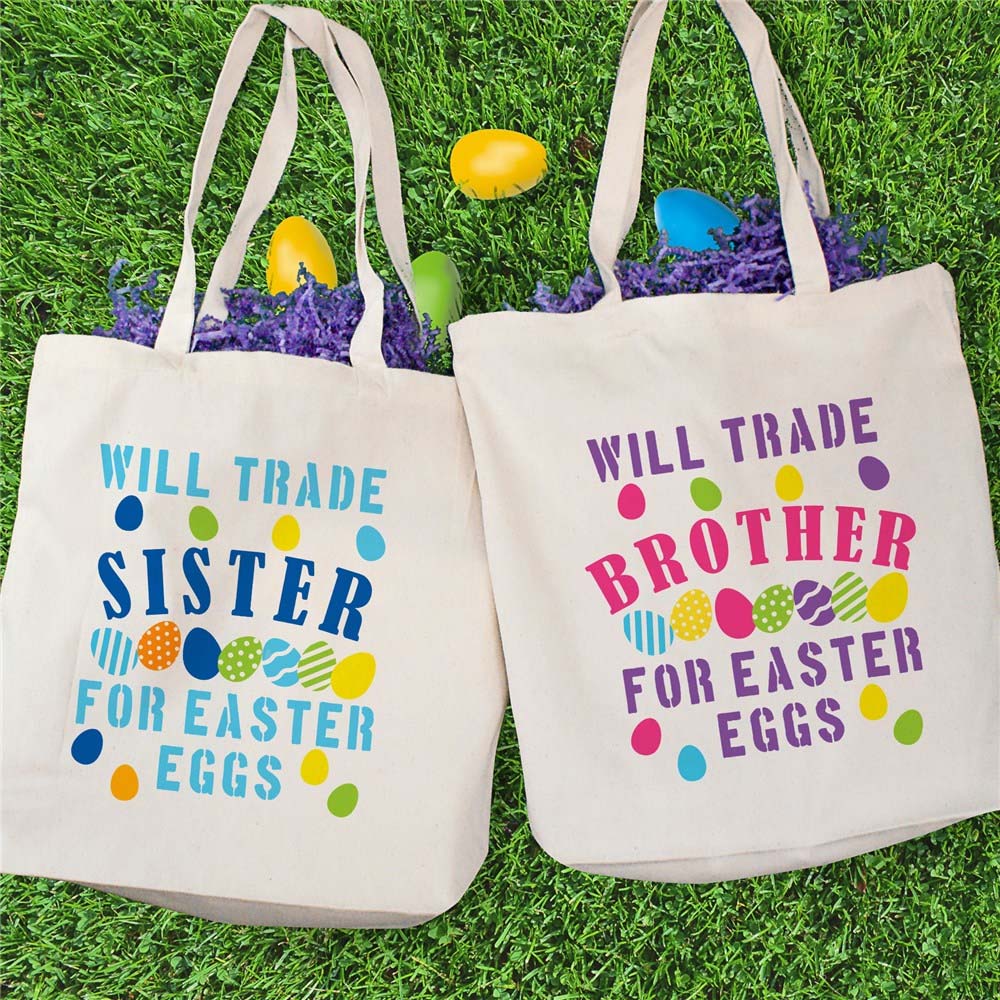 Our Personalized Will Trade For Easter Eggs Tote Bags are cute and funny bags for your kids to use for collecting Easter eggs.