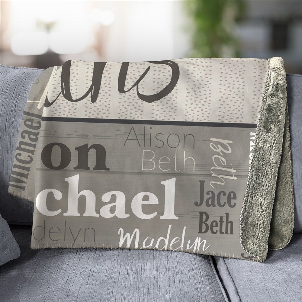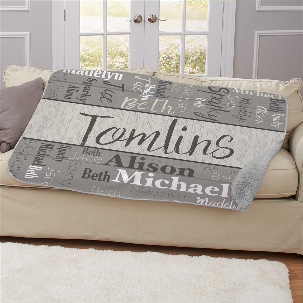 Create one of these Sherpa Personalized Blankets with any family name line and add any individual family members names.