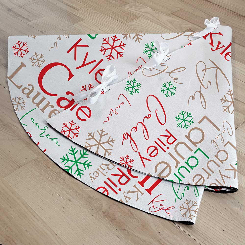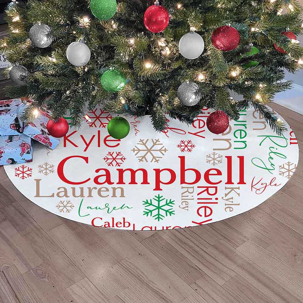 Nestle your family's gifts neatly under your tree with our Personalized Word Art Christmas Tree Skirt!