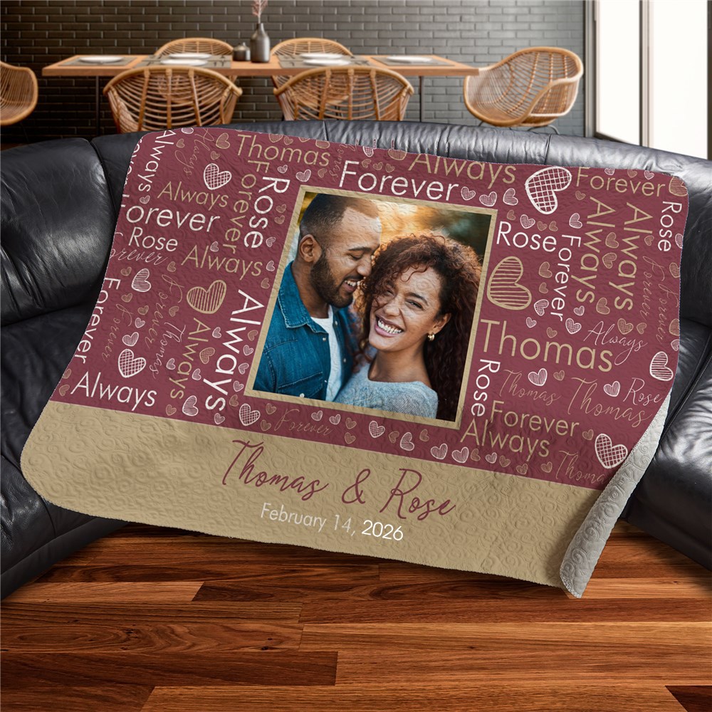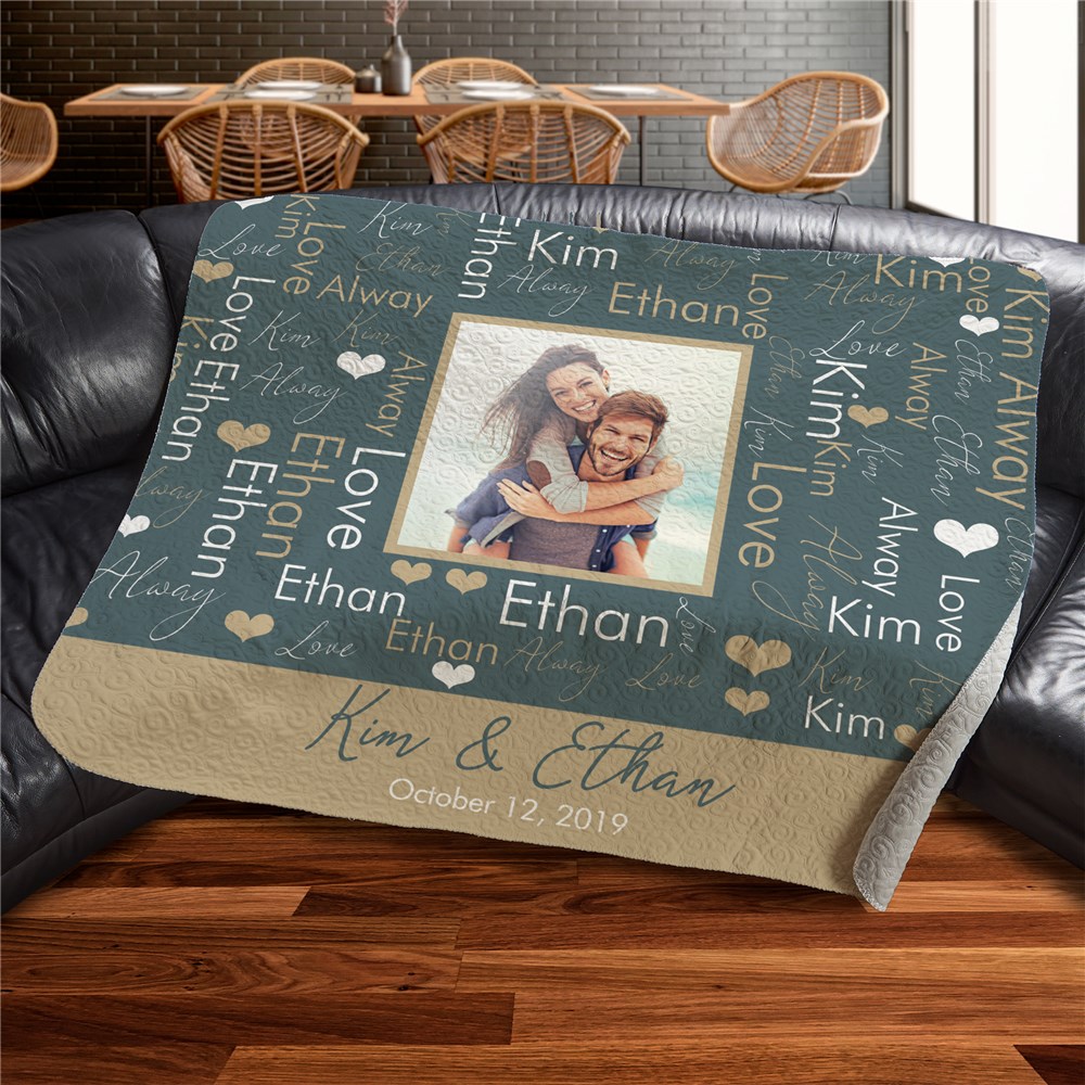 Spend quality time snuggling with your significant other using our Personalized Word Art Couples Photo Quilted Blanket.