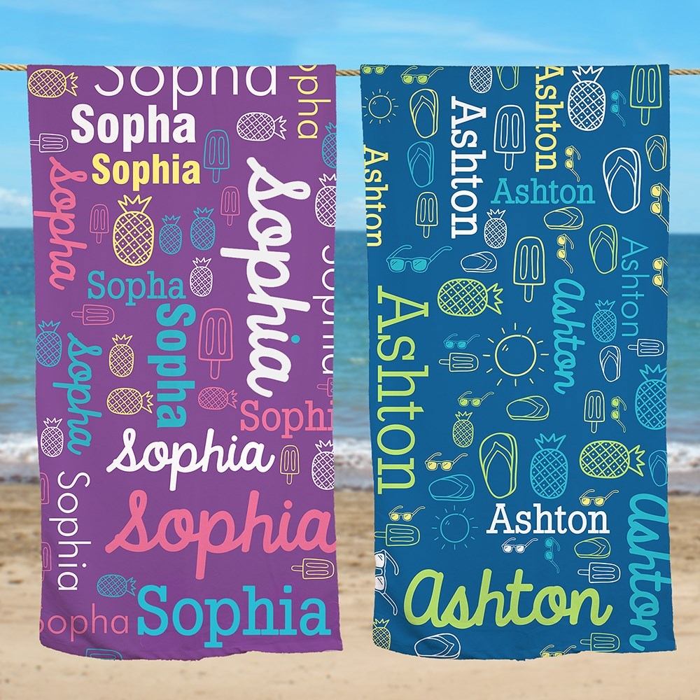 Enjoy sunny summer days at the beach with our Personalized Word Art Sand-Free Beach Towel.