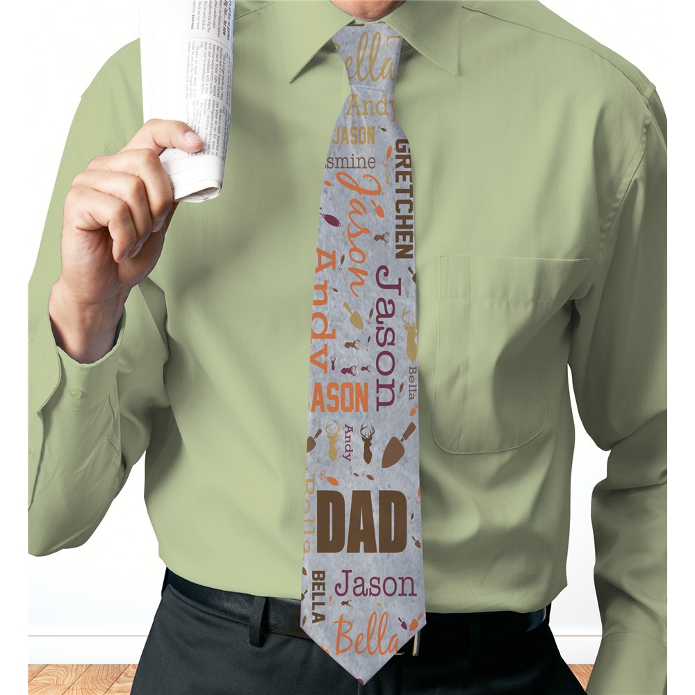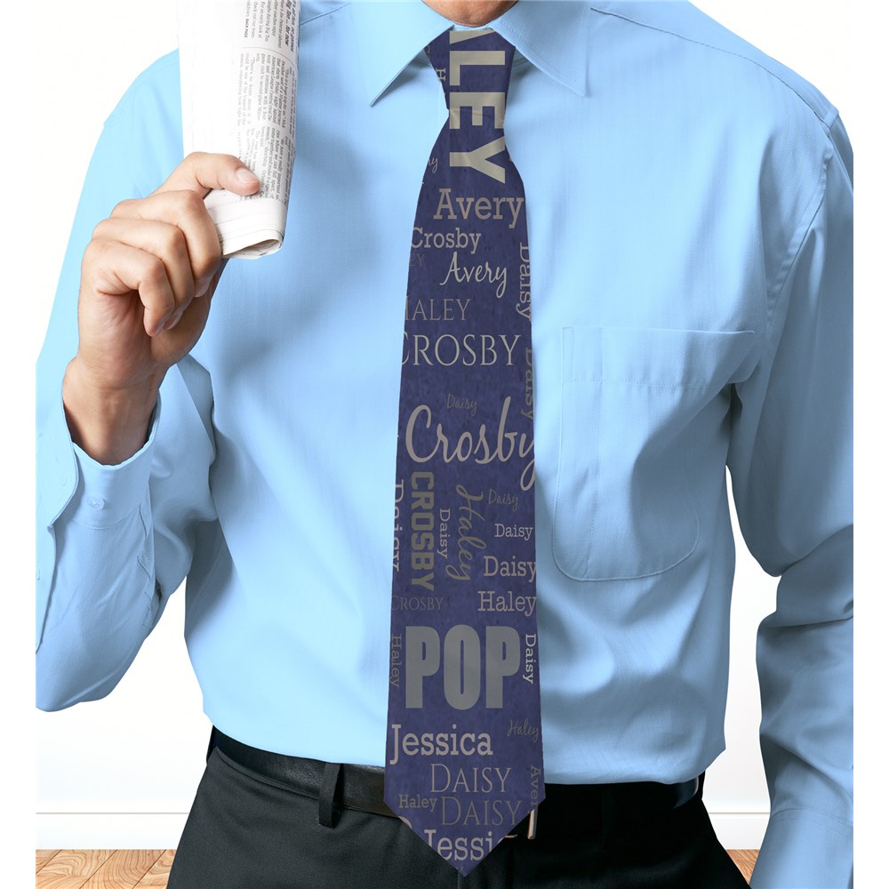A tie is a traditional gift for Dad, Grandpa or Papa. Why not spice it up by creating a truly personalized tie made just for him. Our Word-Art tie allows you to select from four background colors: Navy, Burgundy, Solid Grey or a Patterned Grey. Personalize it for Father's Day gifts or his birthday gift with a Title or Name. Add descriptive words, names or phrases to be repeated in the background along with a favorite hobby or shape symbol accent. Out of all of his Fathers Day presents, this is sure to be among Dad's favorites. *Please note that the personalization is only printed on the front side of the tie.
