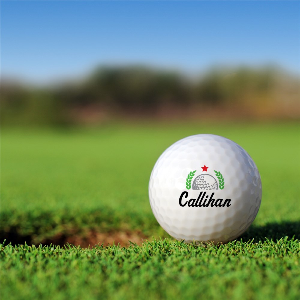Dad can hit the course for a day of his favorite sport with our Personalized Wreath Name Golf Ball Set!