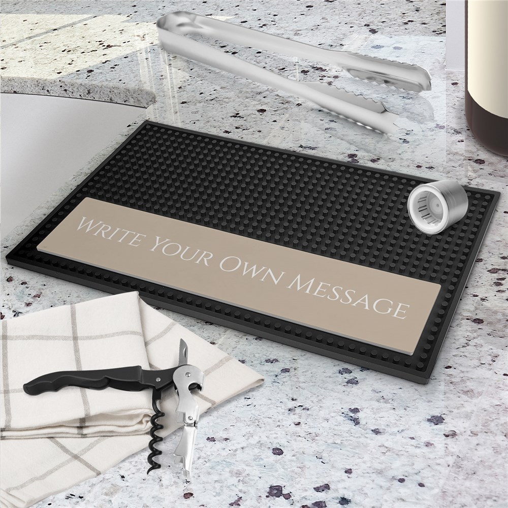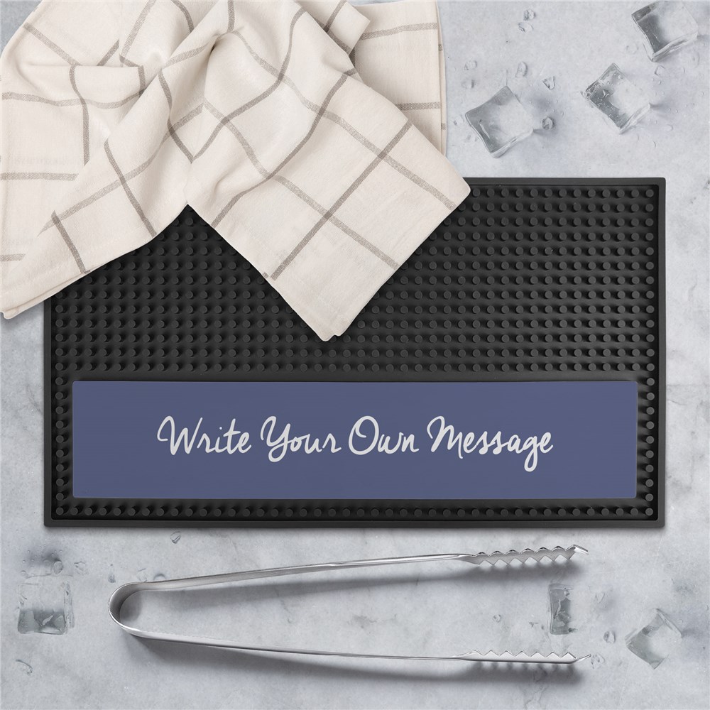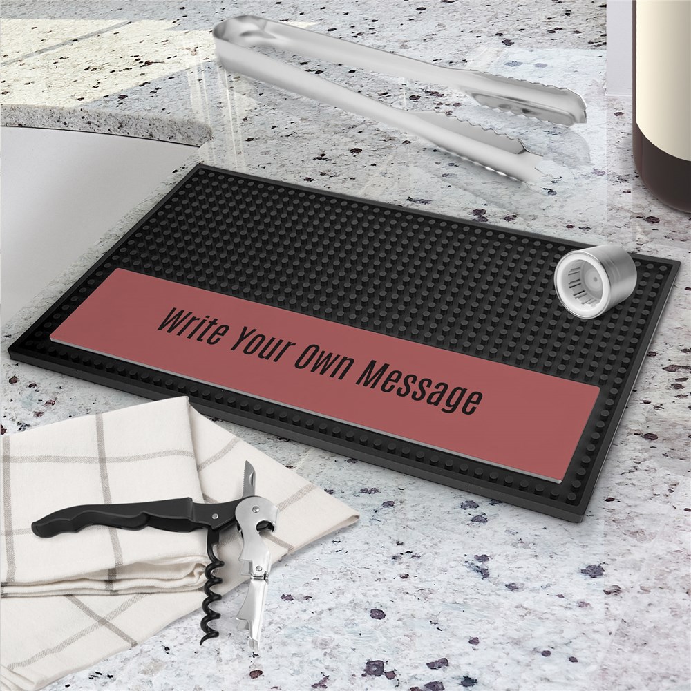 Add a personal touch to your bar or kitchen with our Personalized Write Your Own Rectangle Bar Mat! Choose your background color, font and personalize it with one line of text — perfect for a name, funny saying, or favorite drink quote. This durable, non-slip mat keeps your surfaces clean and stylish while showcasing your unique message.