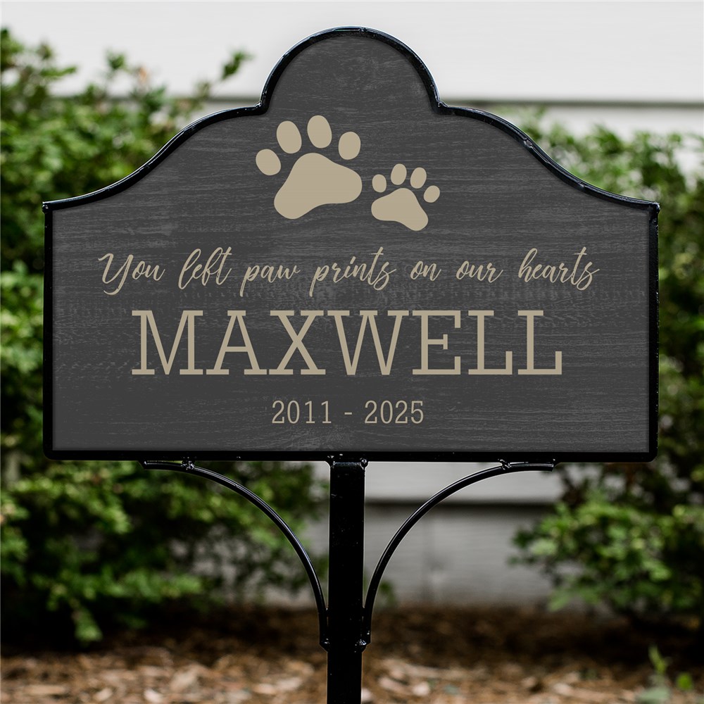 Our Personalized You Left Paw Prints On Our Hearts Magnetic Sign can be placed in your yard in honor of your pet.