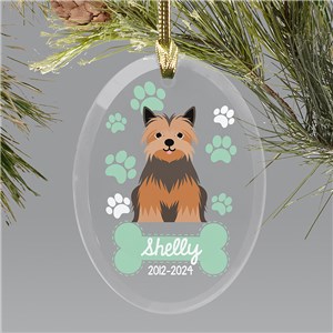 .Personalized Paw Prints Memorial Glass Holiday Ornament