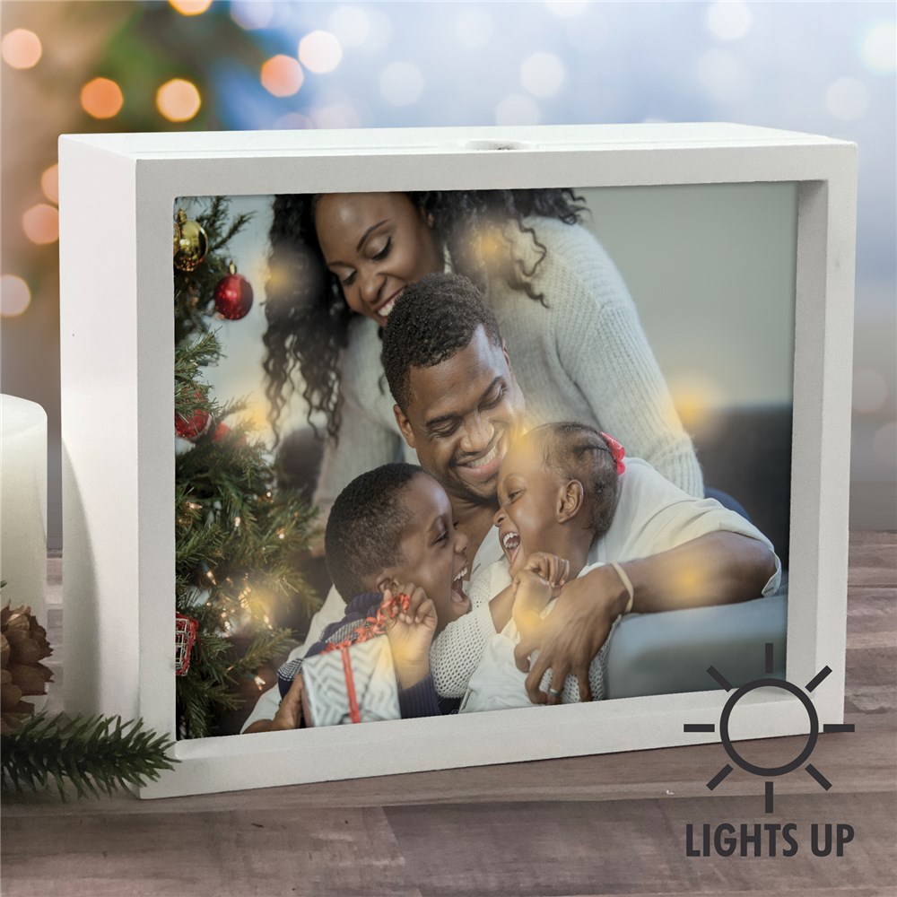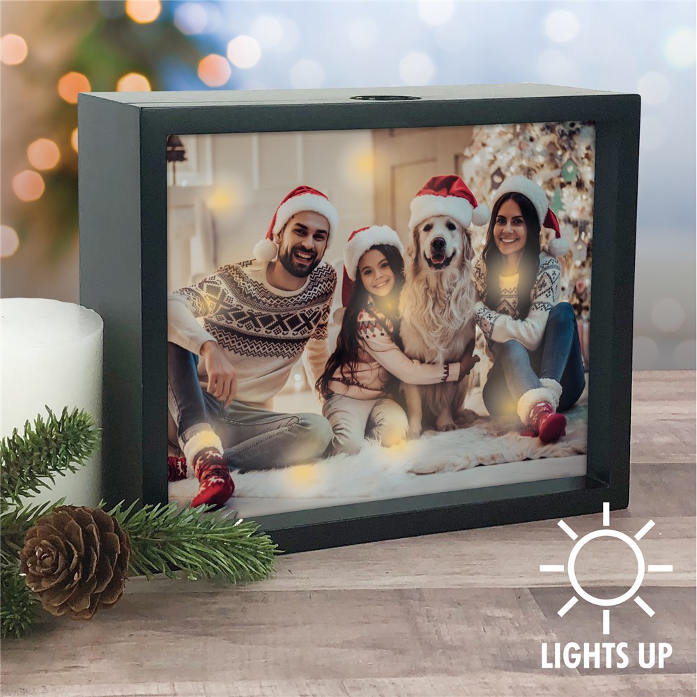 Display your favorite Christmas photo in our Photo LED Lighted Shadow Box. Customize this exclusive LED photo shadow box with any image and your choice of white or black frame color.
