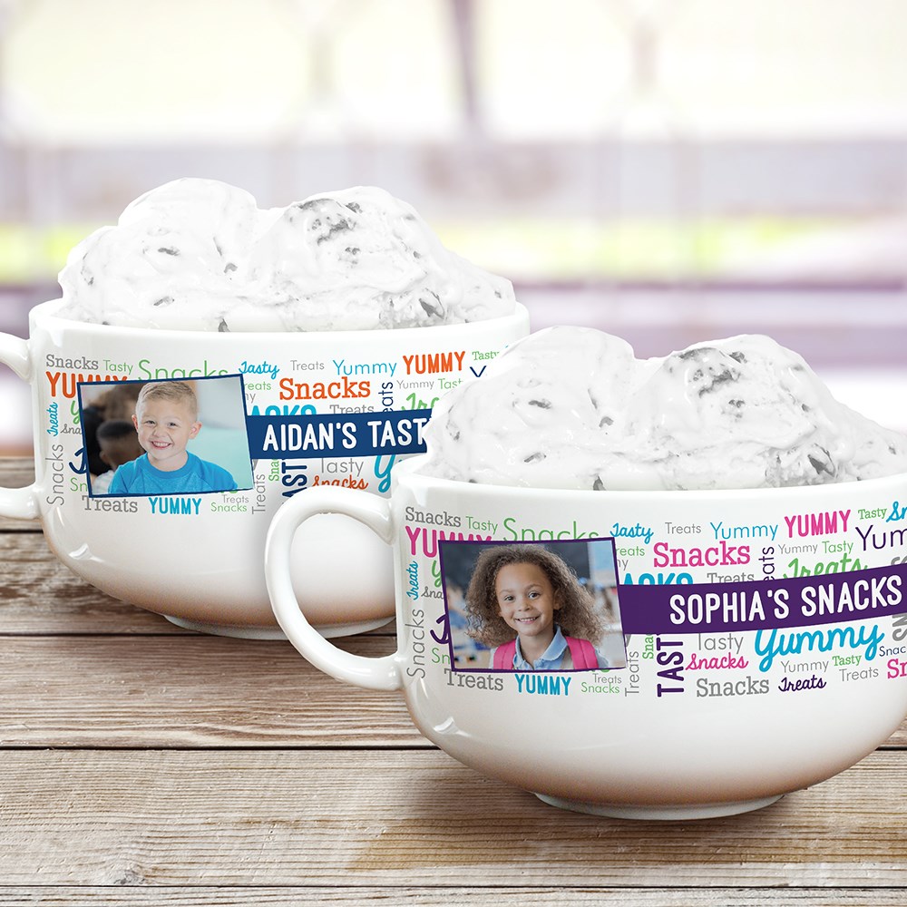Give all the kids in your family their very own our Personalized Kid's Photo Bowl with Handle.